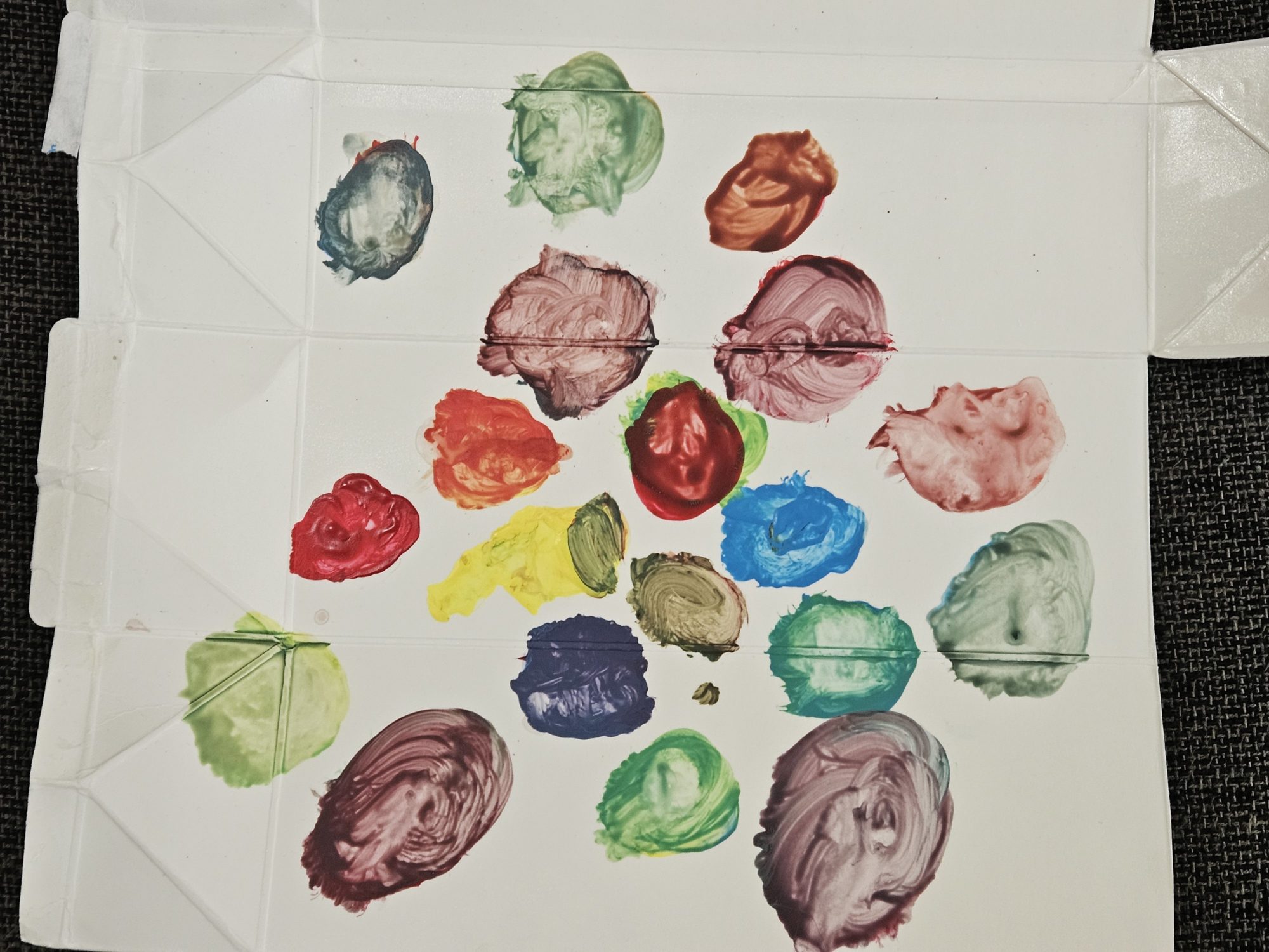 丸くのせられた色は、絵の具の動きや手の感触がそのまま残っていて、とても生き生きしています🎨