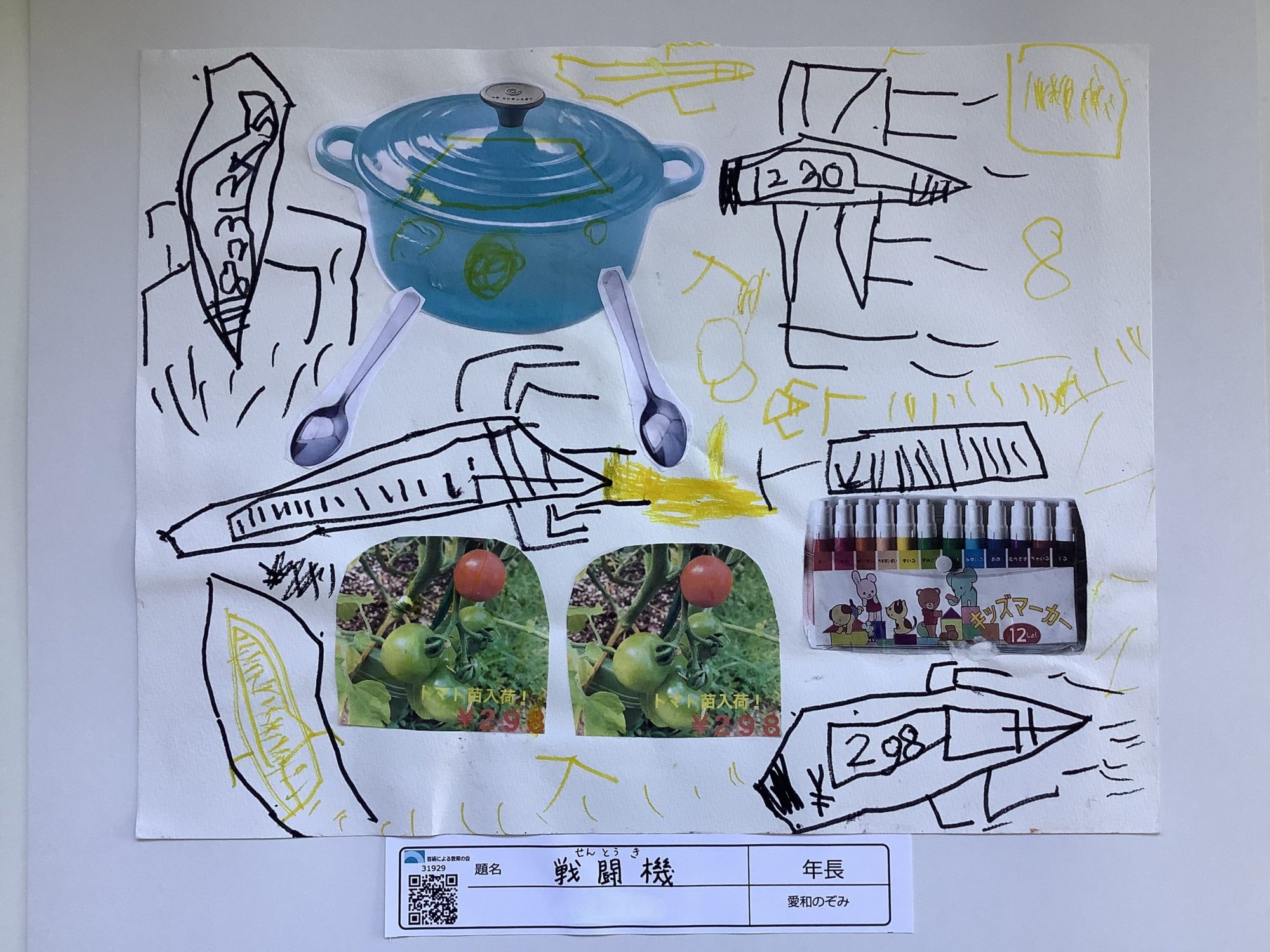 お鍋、スプーン、トマト、マーカーで、テーマが戦闘機。 何で戦闘機??? のんくんの頭の中が見てみたいな。