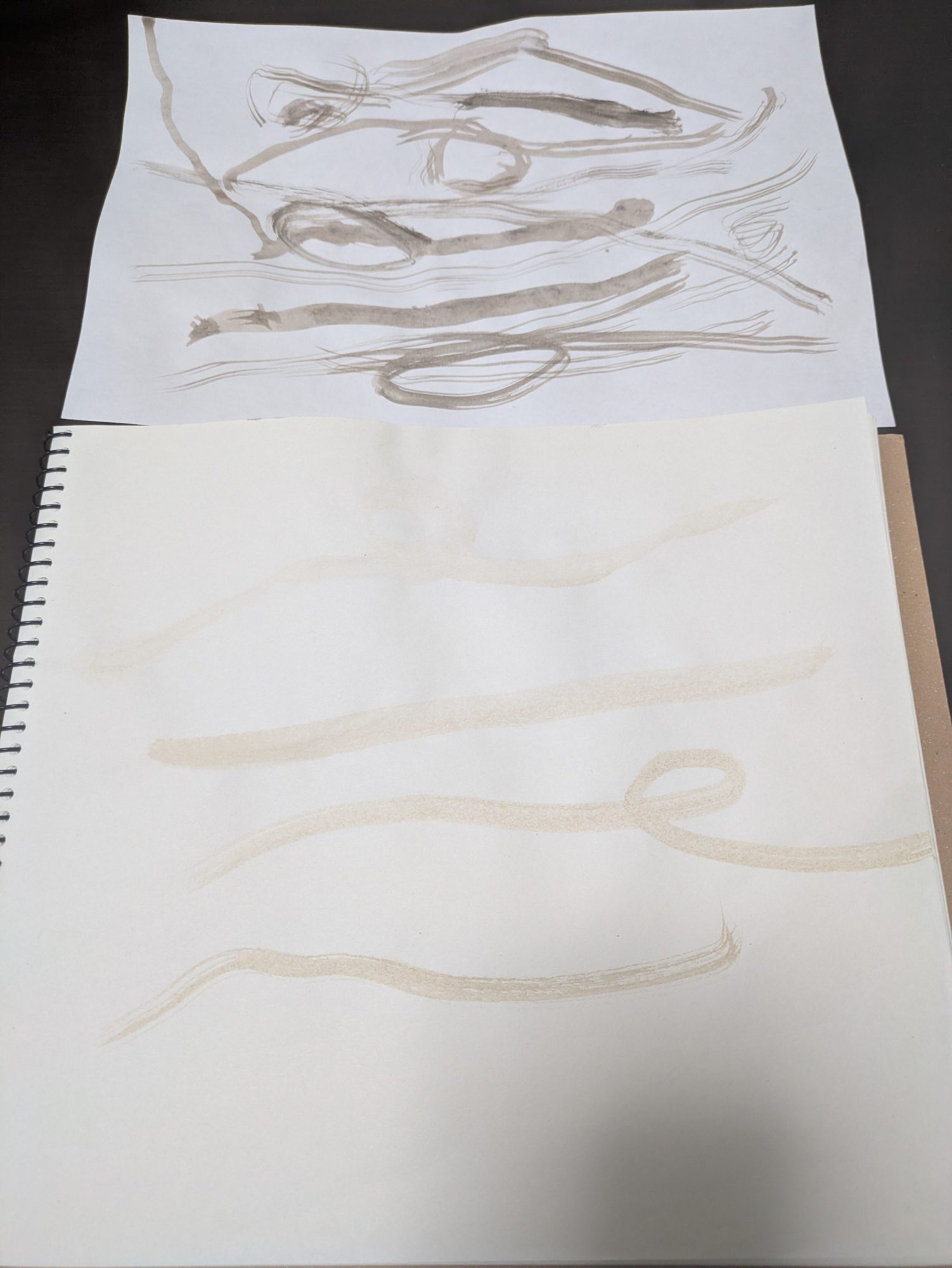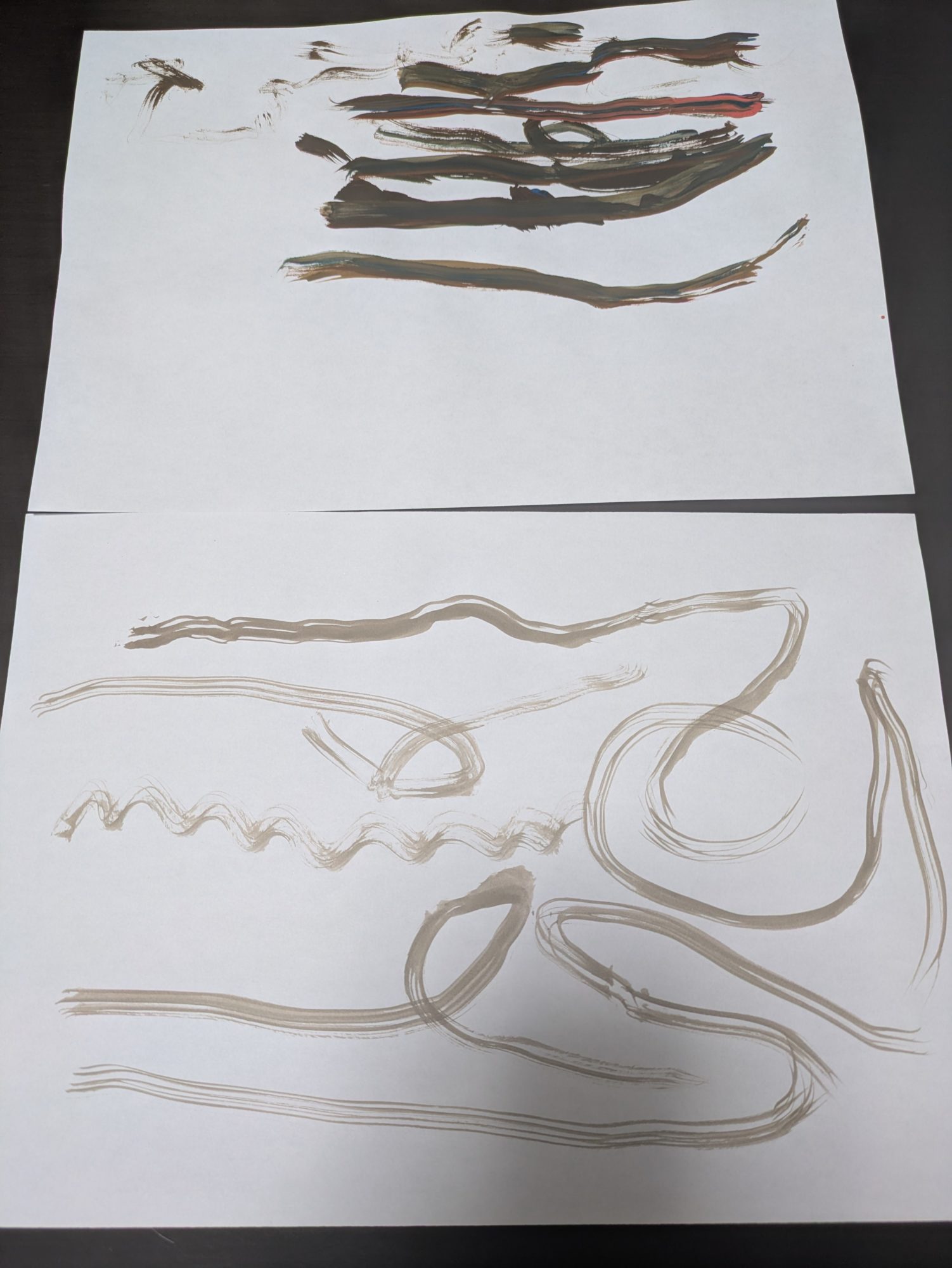 紙の上に、そっと触れるような線が重なり、風が通り過ぎたあとだけが残っているように感じました。太さや濃さのちがう線が、まっすぐ進んだり、ゆっくり曲がったりしていて、目で追っていると空気の流れが見えてくるようです🍃