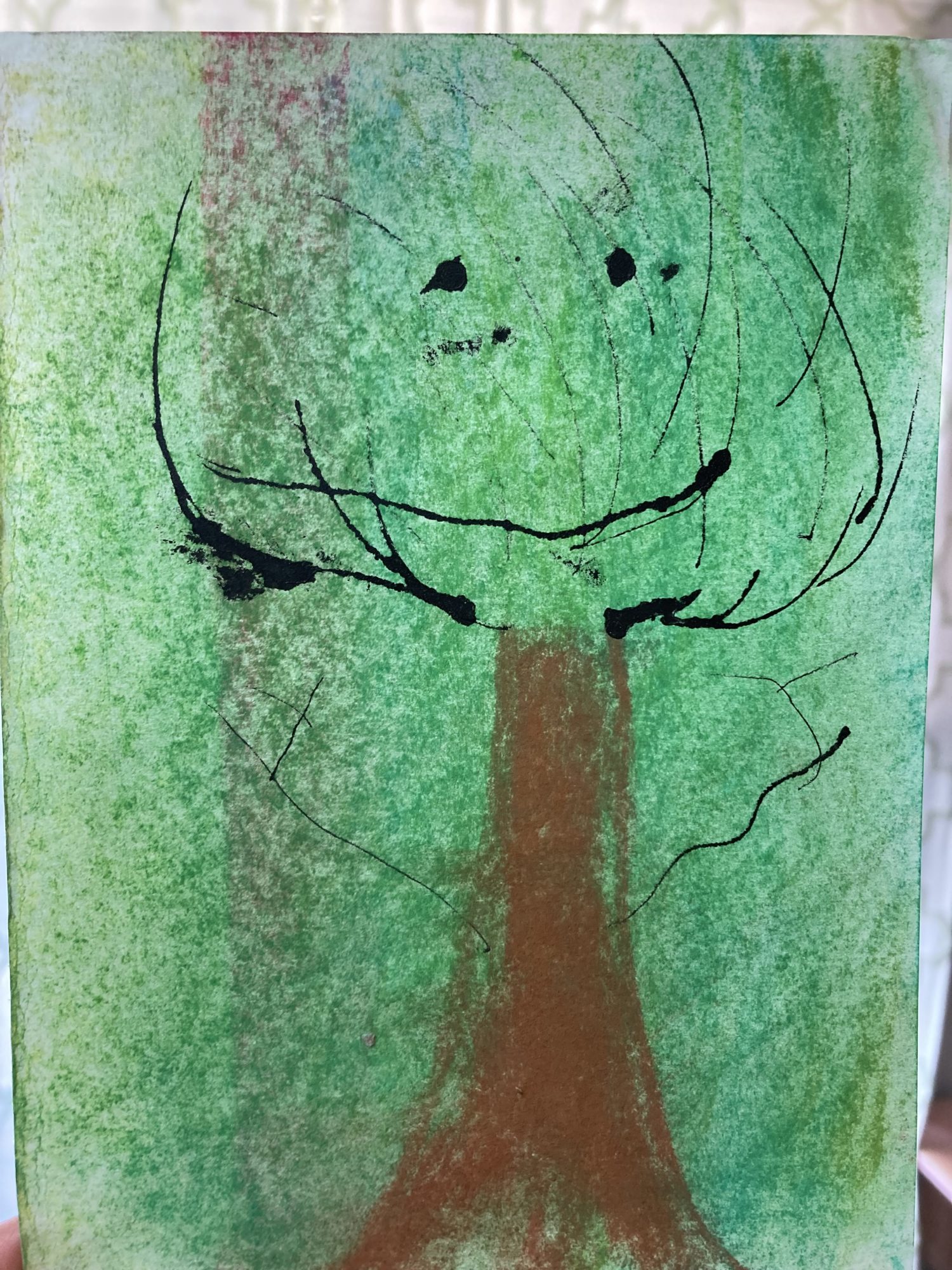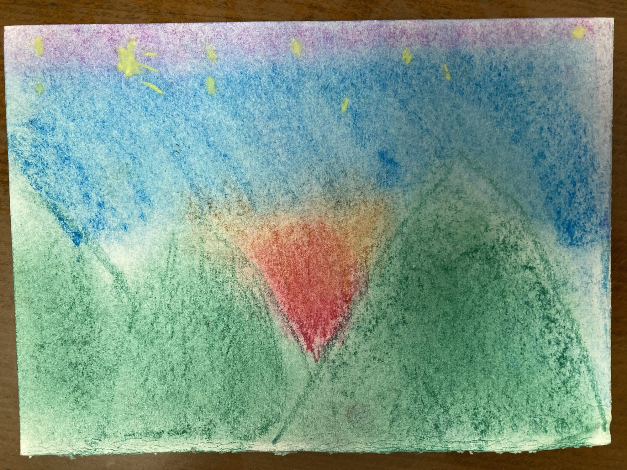 全ての作品に風や新鮮な空気を感じます。星が見えてくる夜を迎えるひんやりした温度、風が少しだけそよいでいるところにある木、、、あげればきりがないほどに目に見えないものをしっかり感じて表現出来る力がある方なのだとちとせ先生は驚いてしまいました。素晴らしい能力「感じとる力とそれを絵で形に出来る表現力」を発揮されている作品です。これからも楽しんで作品作りをして下さいね!