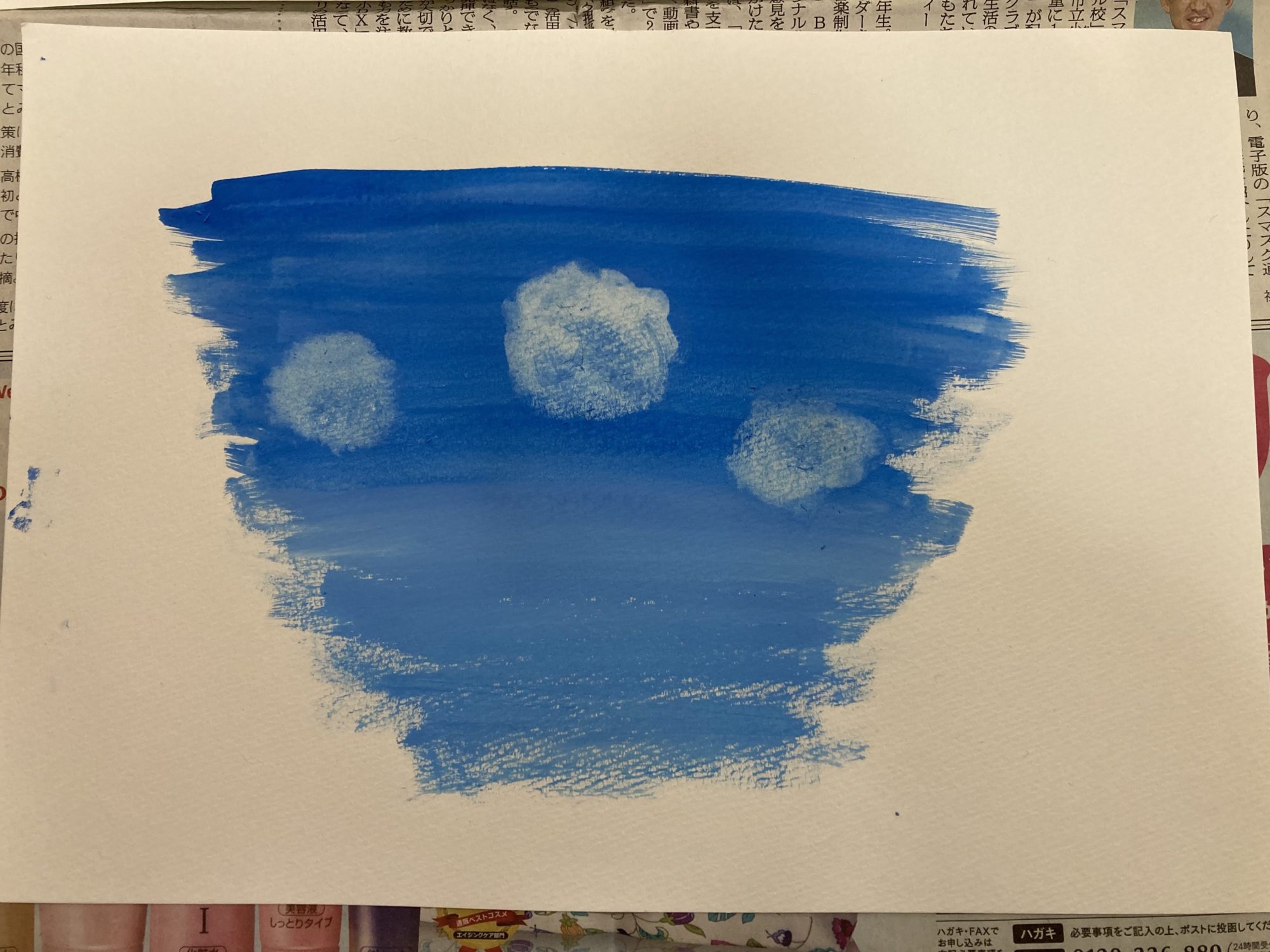 ふわふわのくものかんじがいいですねえ! 絵の具のかわくじかんをかんがえてチャレンジしているのがいいね!