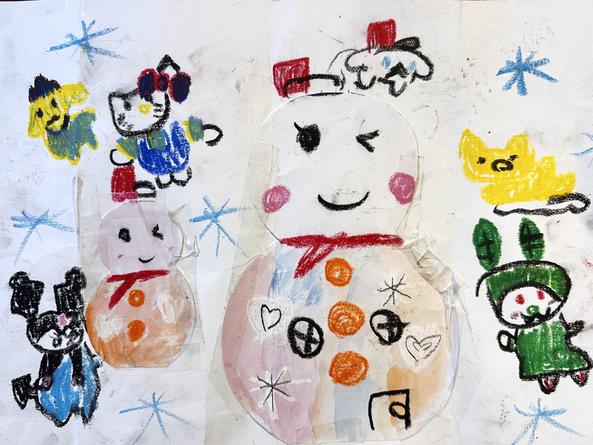 周りのお友達も雪だるまのお家もウインクしていてとってもかわいく描けてるね☃️
