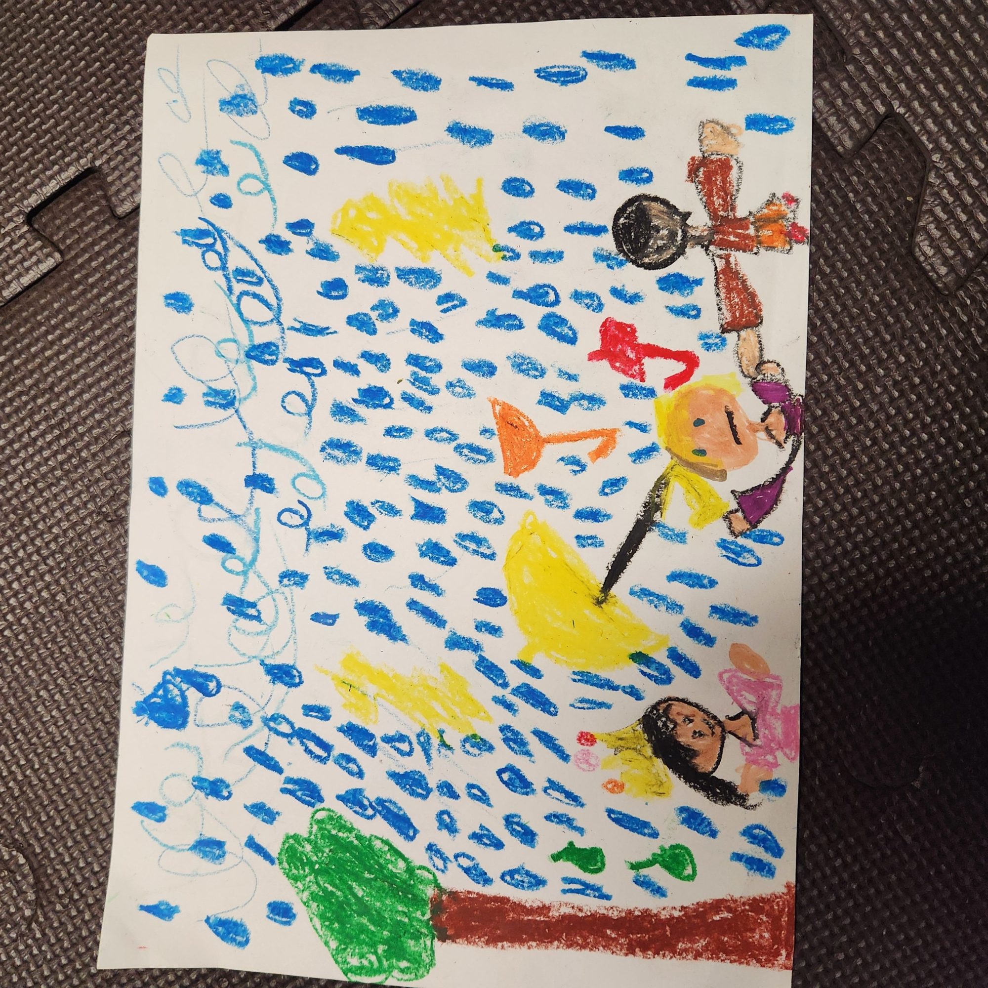 くるんくるんの風や雨の粒で、台風の様子が伝わってくるなぁ〜!