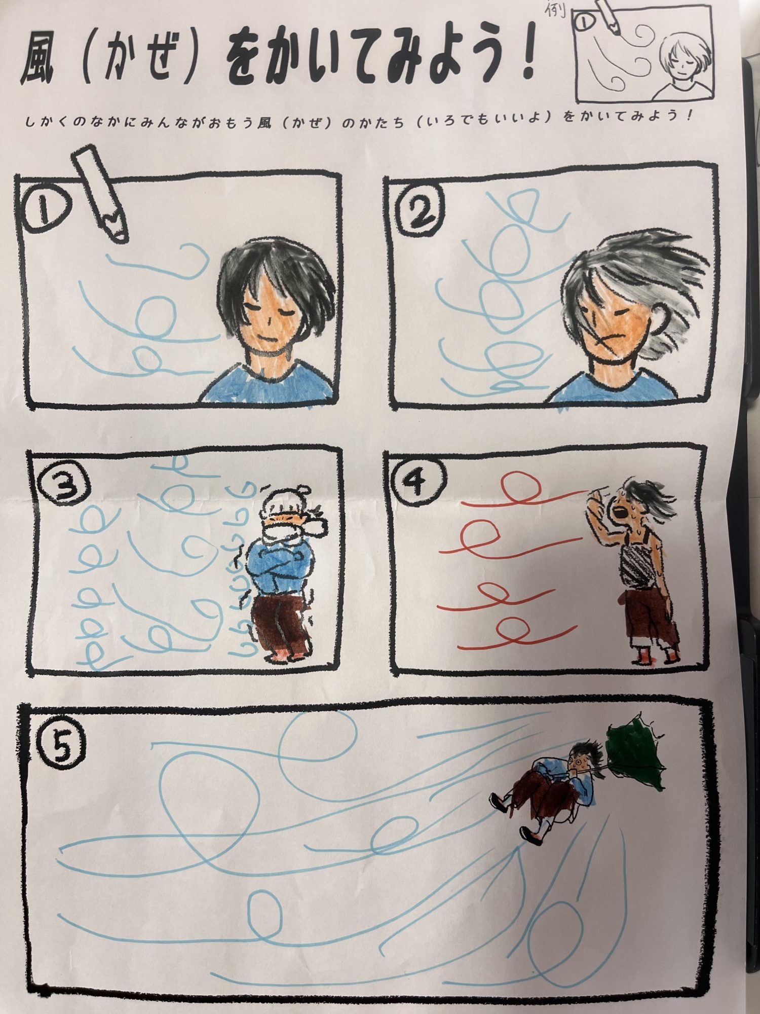 ふでもたくさん動いていて、元気いっぱいなかぜをかんじるよ!🌪️