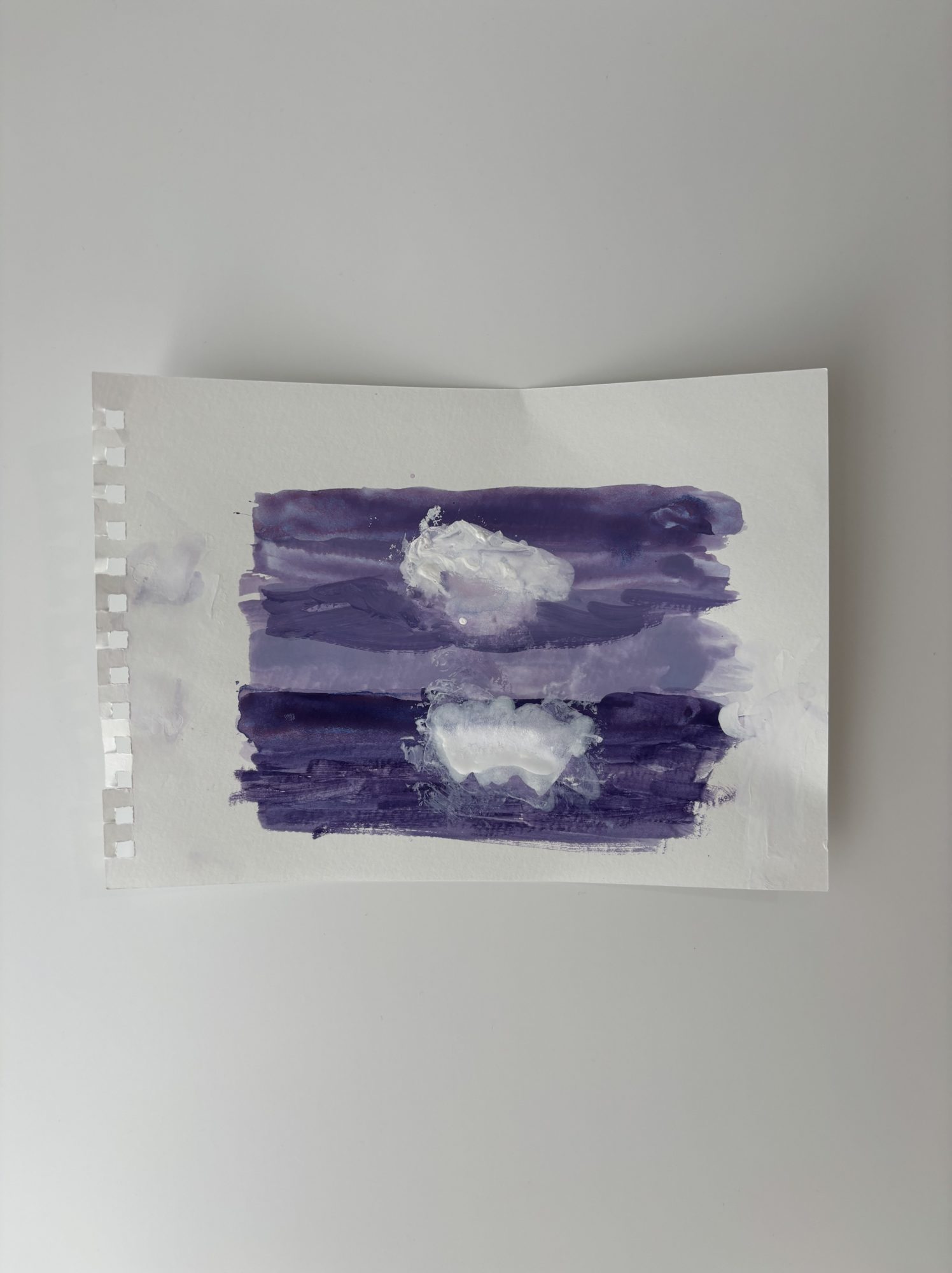 めちゃキレイ✨✨実際見た事のある空なのかな?グラデーションもきっとむずかしかったよね🌫️なのに色々な紫が作れていてすごく素敵な空が出来上がってる⛅️少しずつ色んな色を混ぜて作ったことも、たくさん塗り重ねたんだなーということも伝わります⚡️⚡️見せてくれてありがとう🐾