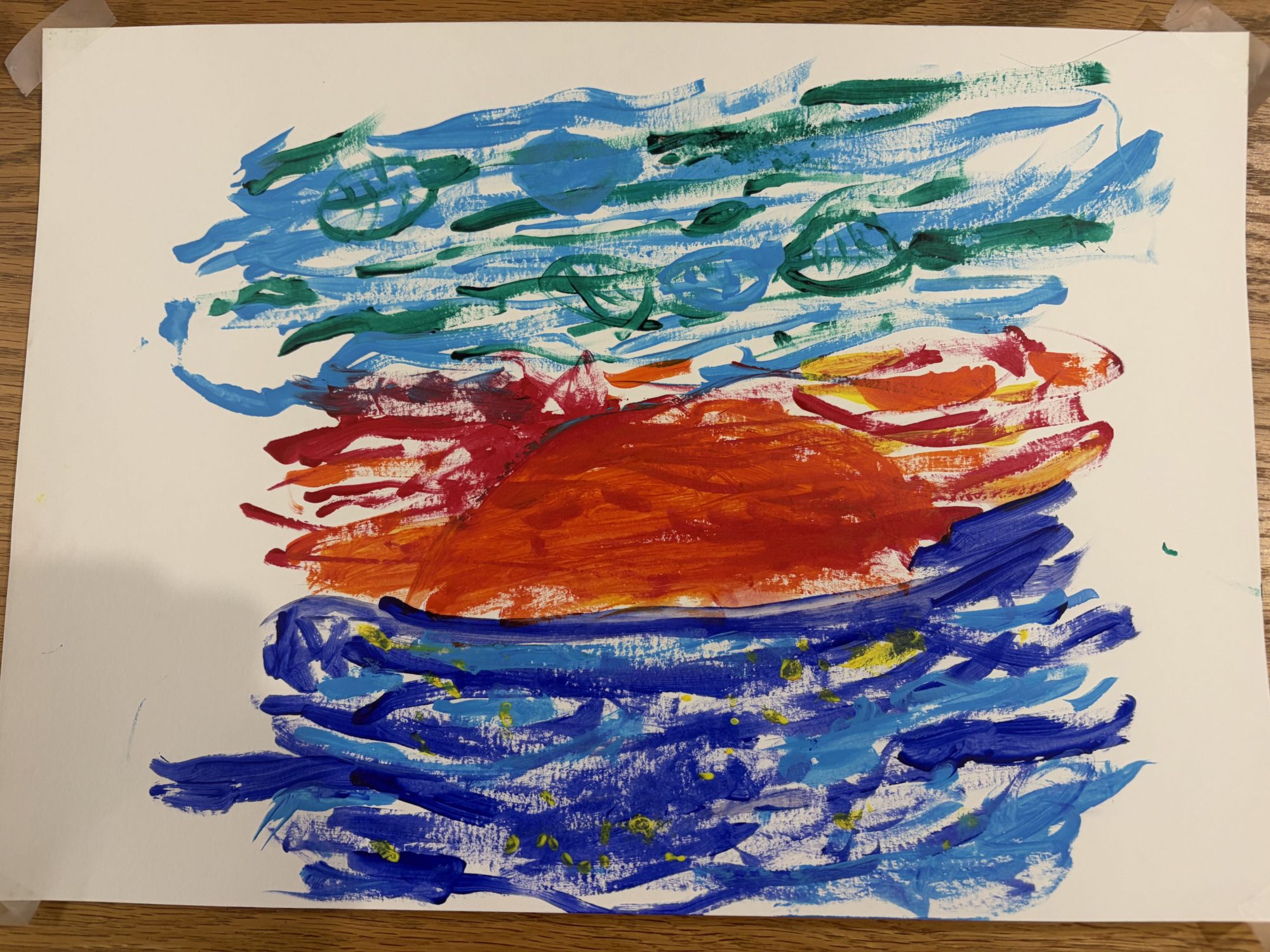 カサカサしたところ、しっとりと気持ちがよさそうなところ、同じ絵の具でも水の使い方でたくさんの表現ができることを学べたと思います。
