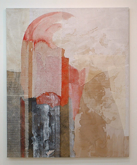 クラフト紙を顔料で染めた紙をベースに、和紙などをコラージュ。