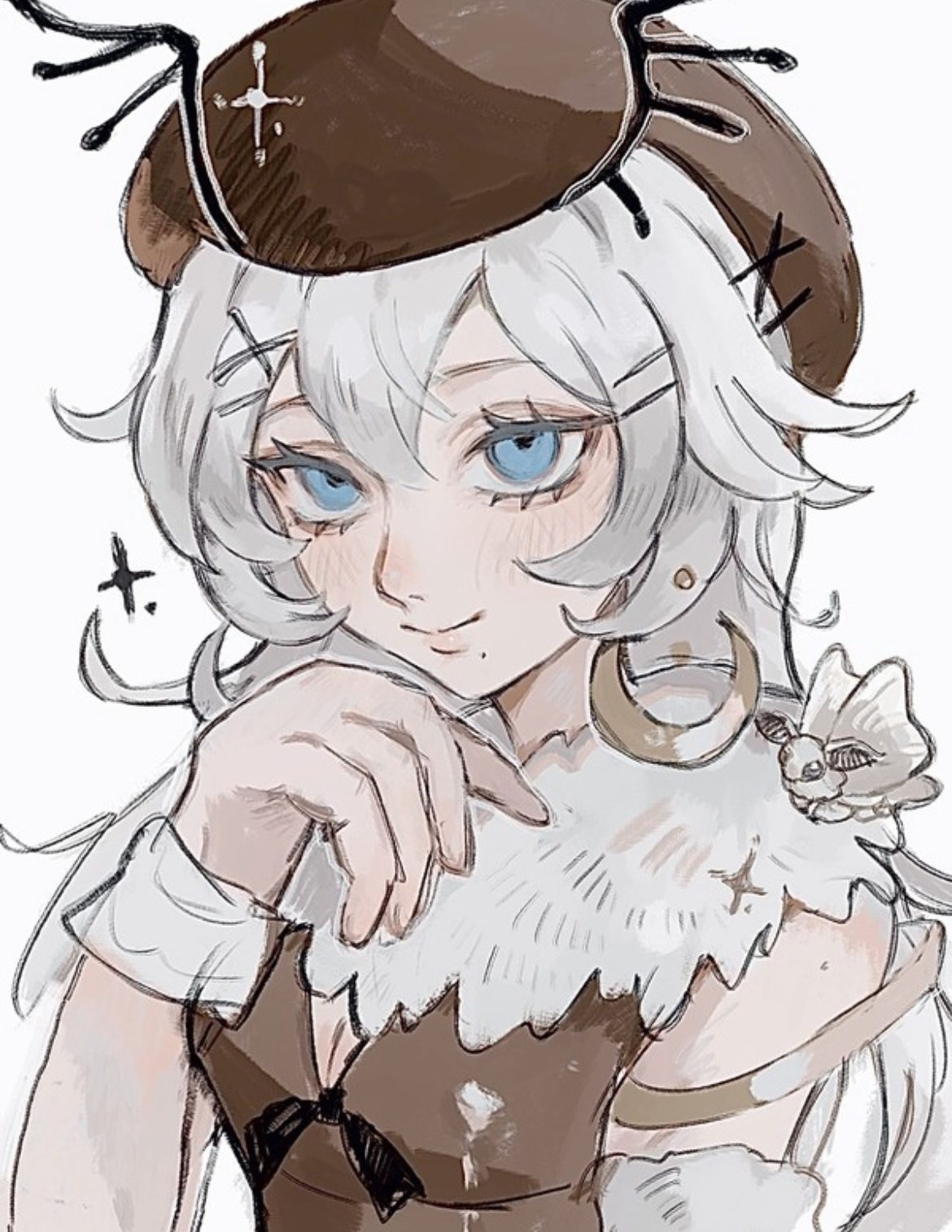 ブラウンを基調にした色づかいが落ち着いていて、そこに水色の瞳がきらりと光るコントラストがとても印象的です。