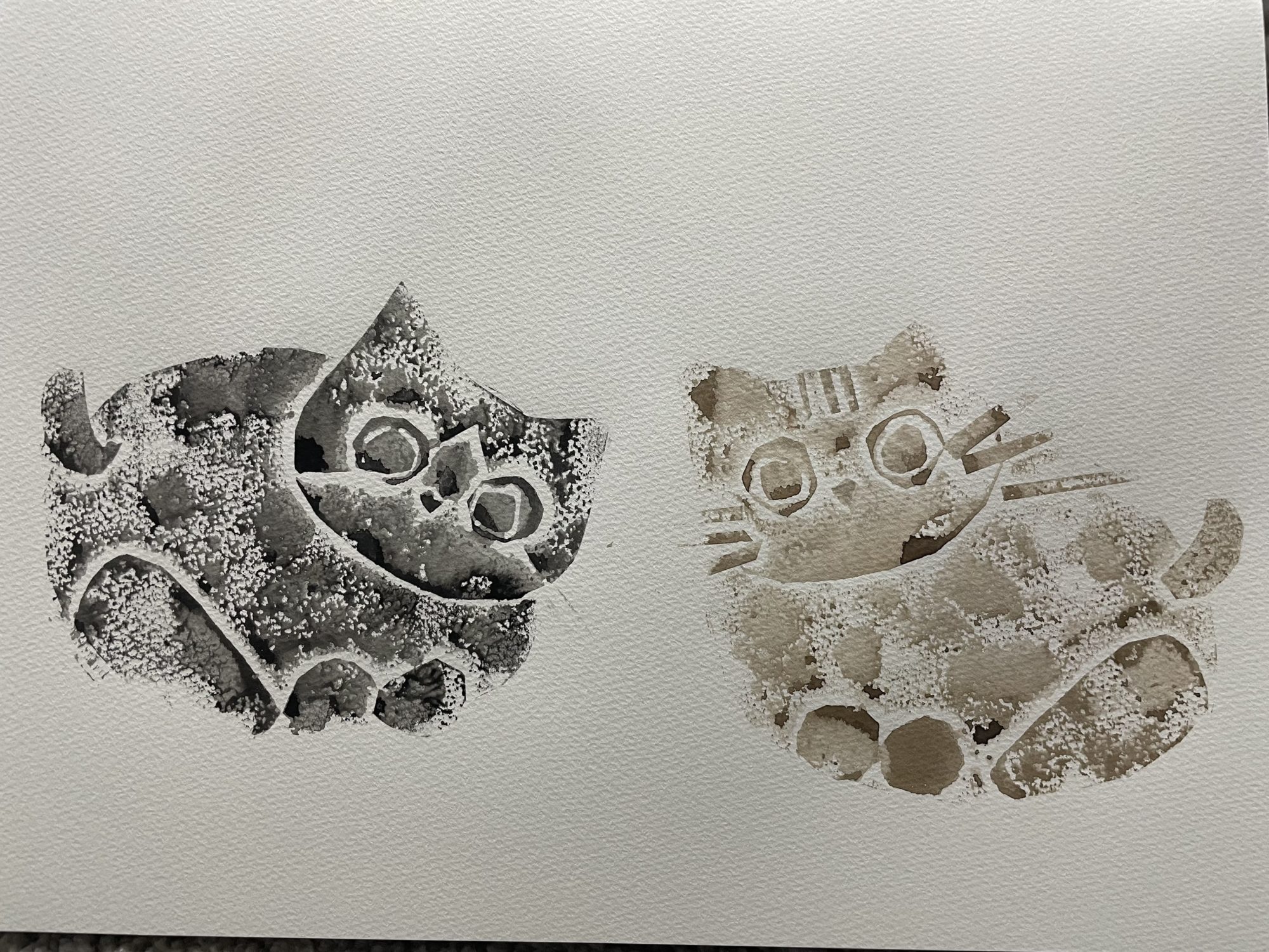 わかめせんせい 先生2026年2月27日 9:28 AM ライムさん。 これは、いいね。とてもいいね。 にじみとにごりが、そのまま毛並みになっています。 左のハチワレは、黒の濃淡が立体をつくっていますね。 目のまわりの白さが、しっかり生きています。 右のキジトラは、やわらかい茶色の重なり。 模様が、にじみの偶然とぴったり合っています。 水と顔料がつくる「まだら」が、本物の毛の感じを出しています。 ひげが取れた、とのこと。 でも、その余白がかえって想像を広げています。 描きすぎない勇気も、表現の一つです。 二匹の目の丸さ、とても愛情を感じます。 描いている時間、きっと静かな気持ちだったのではないでしょうか。 この子たちは、どんな性格ですか? 🐾✨ ログインして返信する ↓