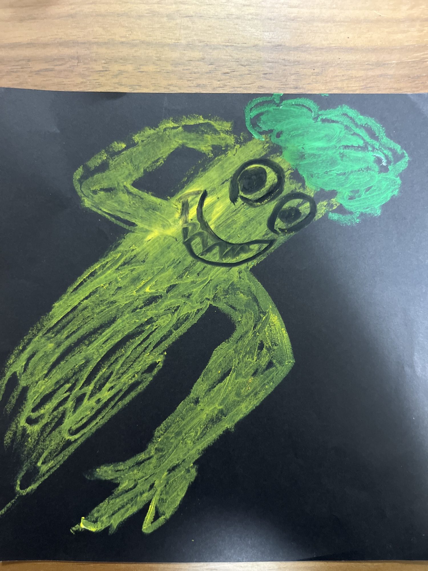 チョークのこすれや重なりで、形を探しながら描いている様子が伝わってきて、描くことそのものを楽しんでいる気持ちに共感しました😊