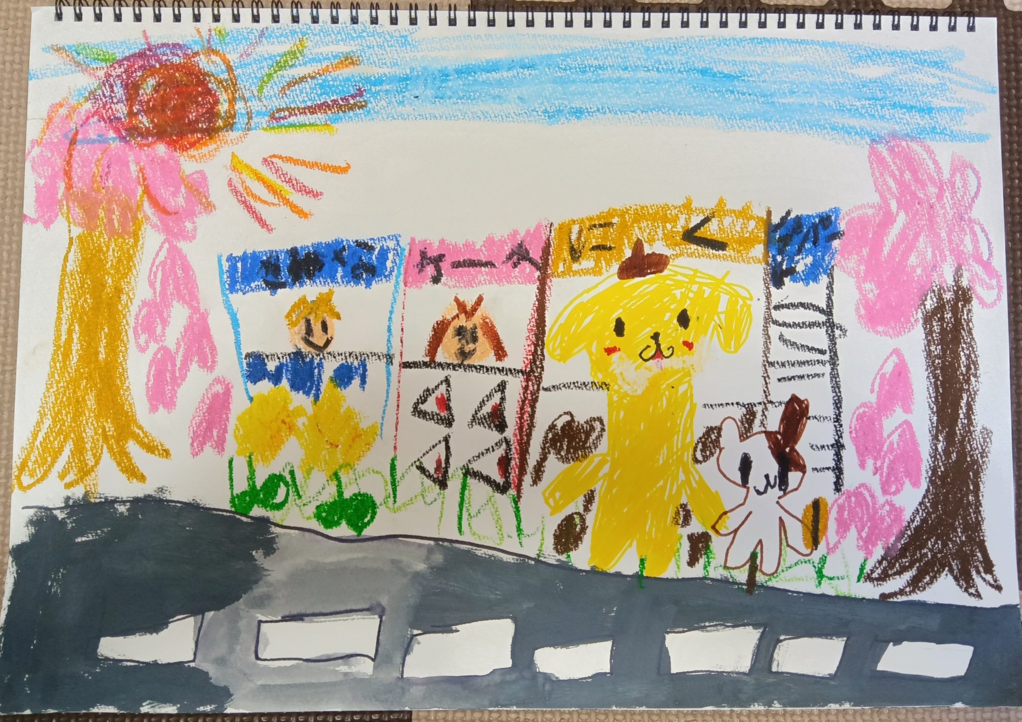 春の街を想像しながら、わくわくしながら描いていた気持ちが伝わってきました。好きなものをたくさん集めて世界を作る力がぐんぐん広がっていていいね🌷