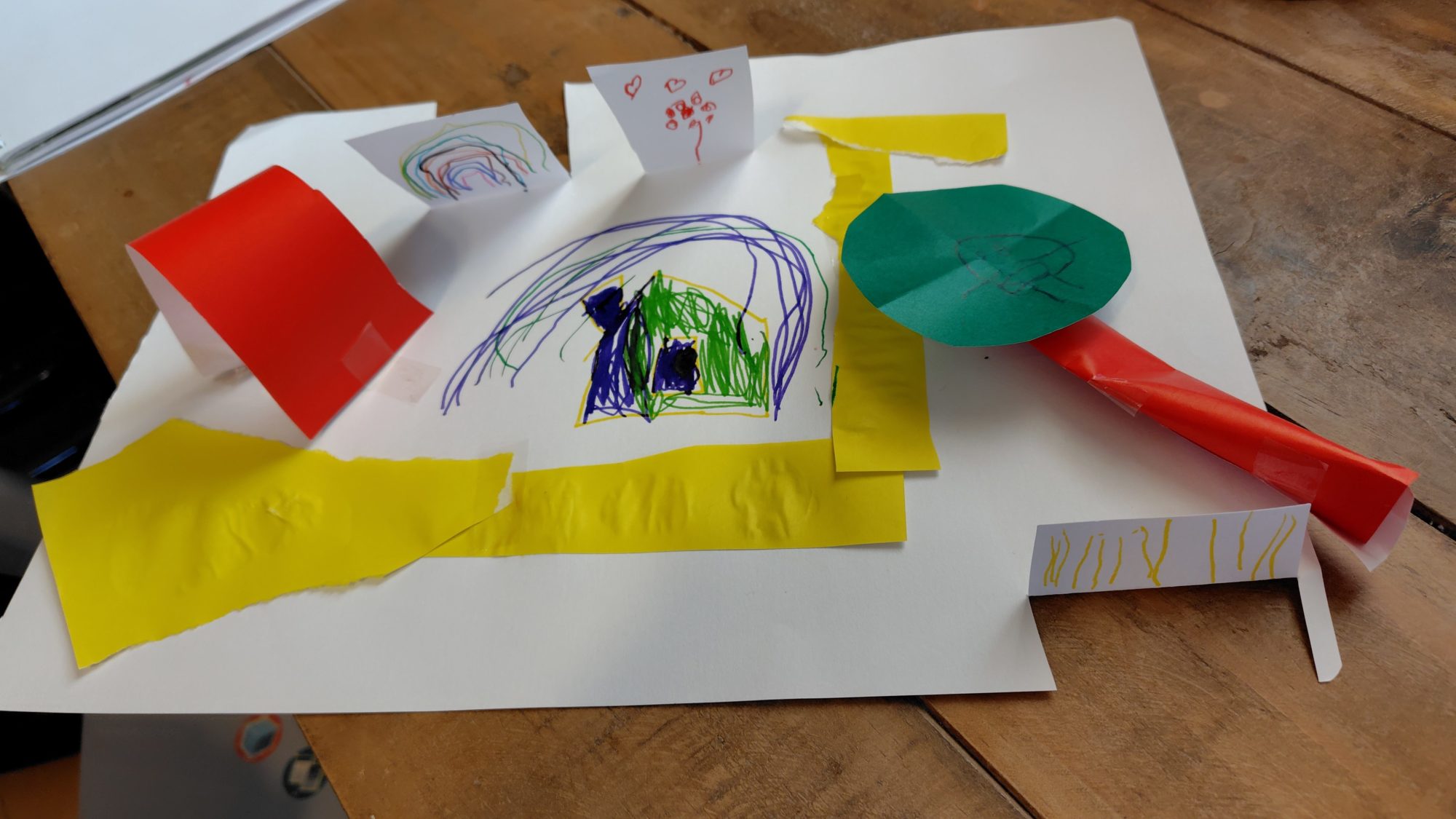 おさんぽしながら、いろんな景色を見つけてワクワクしている気持ちが伝わってきました。紙を立てたり曲げたりして、空間をつくっているところにも、たくさん試した跡があっていいね😊