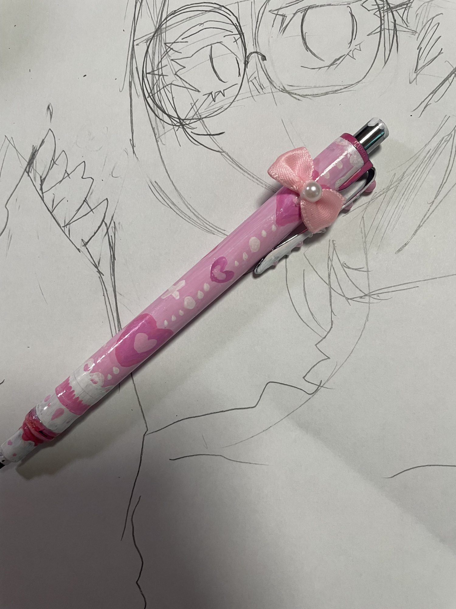 そして下のシャーペン、とても丁寧に飾り付けされていますね。リボンやハートがついていて、「描くことが好き」という気持ちそのものが道具にも表れていて素敵だなあと感じました。使うたびにわくわくしそうでいいね!💗
