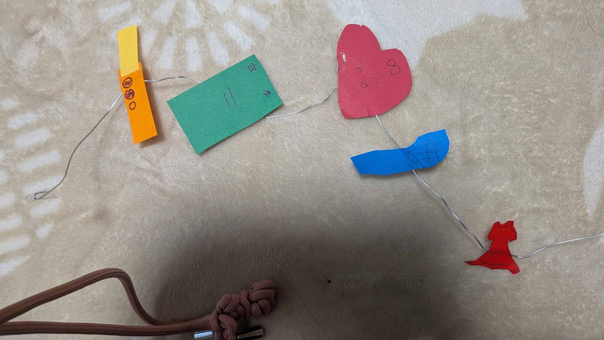 わかめせんせい 先生2026年3月29日 12:33 PM ころもちさんへ はりがねのゆらゆらの上に、オレンジのペンライト、みどりの台本、赤いドレス、青いマイクが並んでいて、それぞれの形や色がとてもはっきりしていていいね😊 真ん中のハートちゃんが、ふわっと支えられている感じもおもしろくて、見ていると本当にステージの上みたいに感じました✨ アイドルになるための大切なものをひとつひとつ選んで、並べていった気持ちが伝わってきて、ワクワクしながら作っていたんだろうなあと想像しました💓 バランスをとりながら、世界を作っていく挑戦がとても生きていていいね。ころもちさんの中にある「なりたい」が形になっている作品だと感じました🌈 私は、ハートちゃんが今にも動き出しそうで、歌や光が広がっていく景色を思い浮かべました。 このハートちゃんは、どんなステージで歌うアイドルなのかな?🎤 ログインして返信する ↓