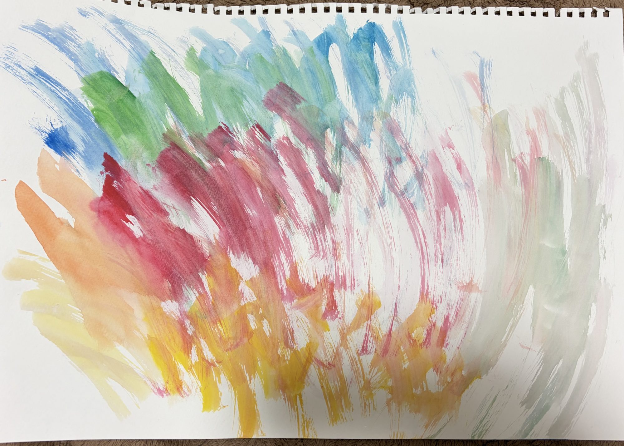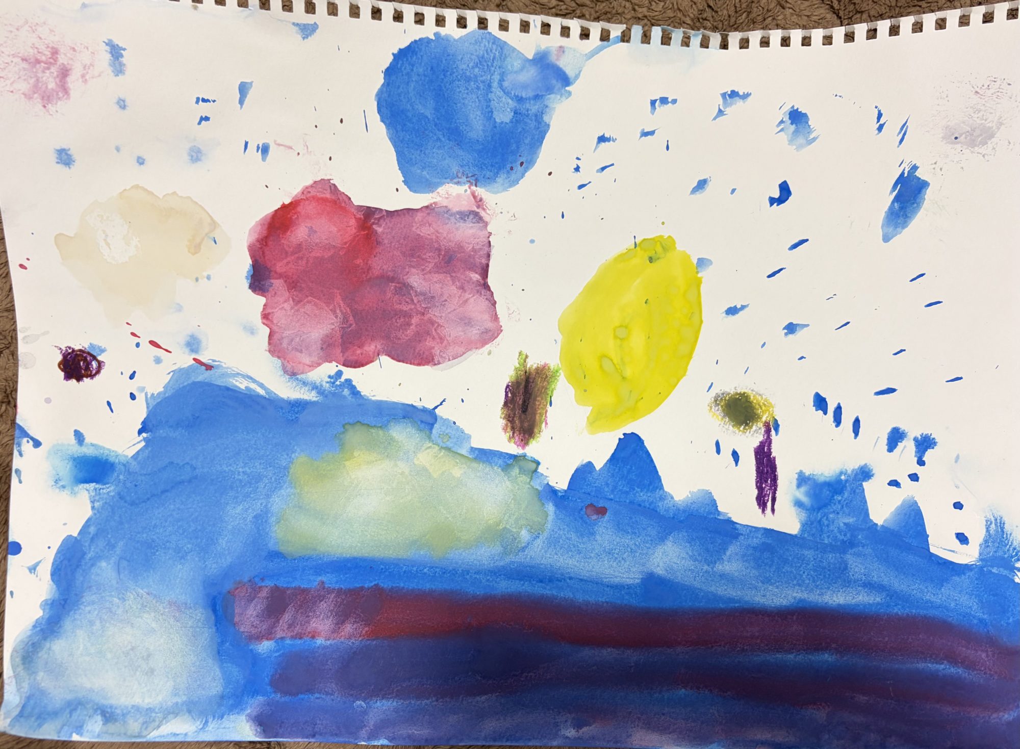 今回も自由に絵の具とクレヨンを使ってかきました。