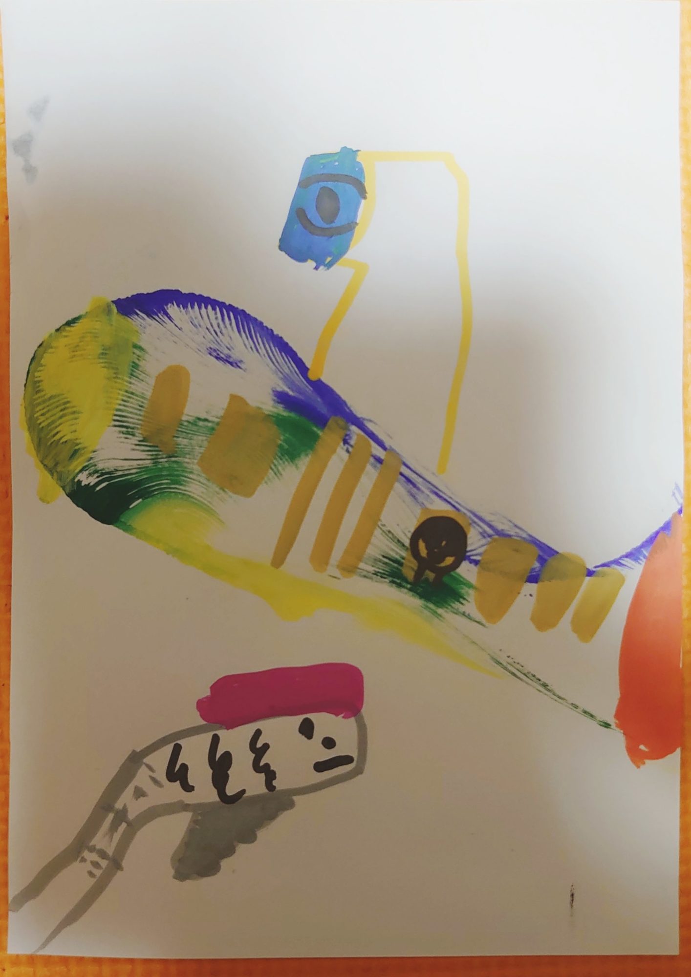 きっと「これ何に見えるかな?」と考えながら、形を見つけていく時間が楽しかったのではないかなと想像します。偶然できた形を生きものや物に見立てる発想、とてもいいね!✨