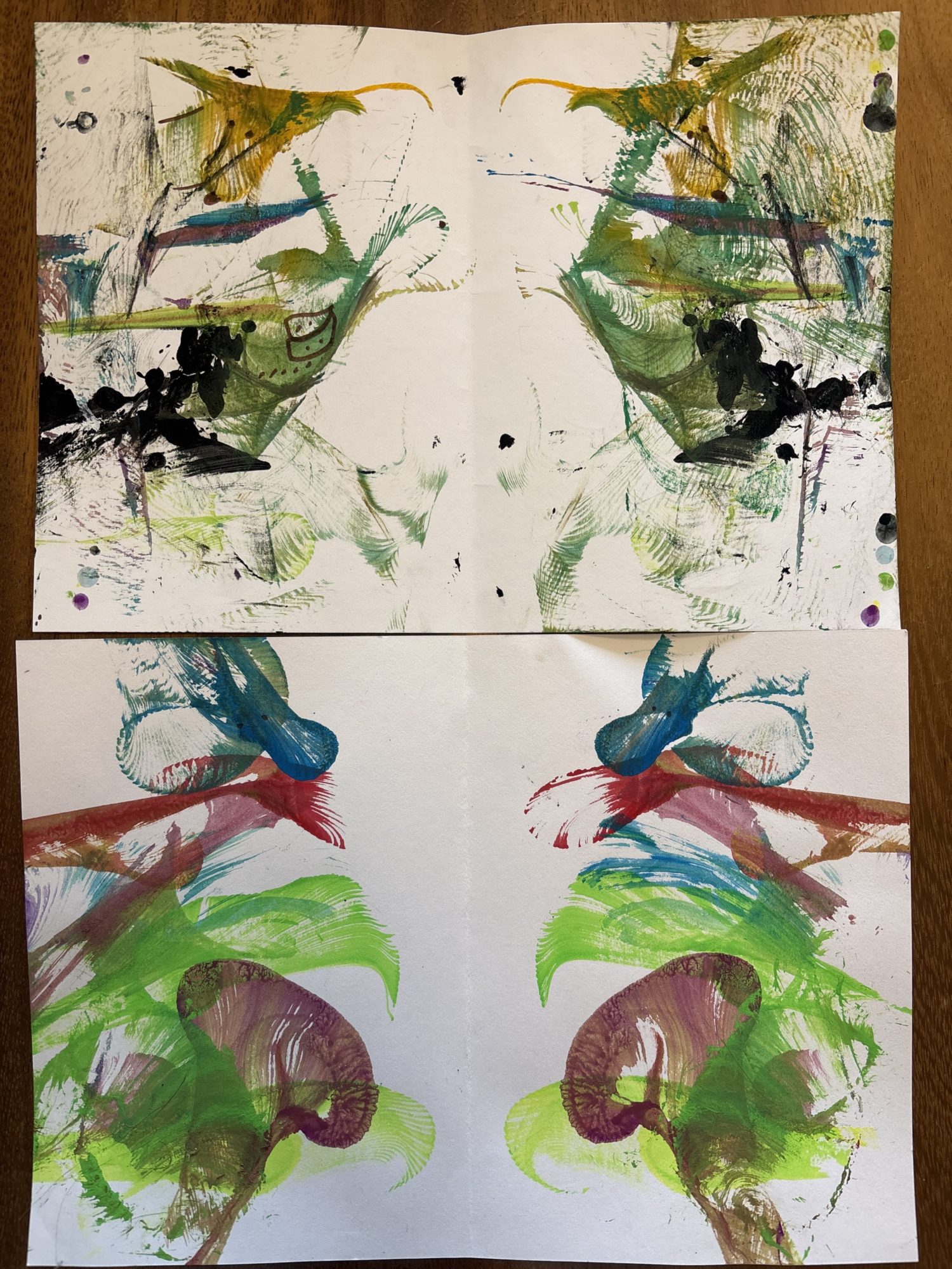 わかめせんせい 先生2026年4月14日 2:43 PM えびさん、画面の真ん中でぴったり左右がひらいて、まるで鏡のように形が生まれているのがとても印象的ですね✨ 緑や茶色の重なりの中に、角のような線や顔のような形がふっと現れて、たしかにカモシカがこちらを見ているように感じます。黒のかたまりや細い線も効いていて、森の奥の気配まで伝わってきますね🌿 糸を引いた偶然のかたちを「見つけていく」楽しさが、そのまま作品にあふれていていいね! さらにフラミンゴまで見つけてしまう発想の広がりに、えびさんの目の面白さを感じました🦩 見えたり見えなかったりする不思議な世界に、じっくり向き合っている時間が伝わってきます。私は、探せば探すほど新しい生き物に出会えそうだと感じました。 えびさんは最初にカモシカを見つけたとき、どの形がそう見えたのかな?👀 ログインして返信する ↓