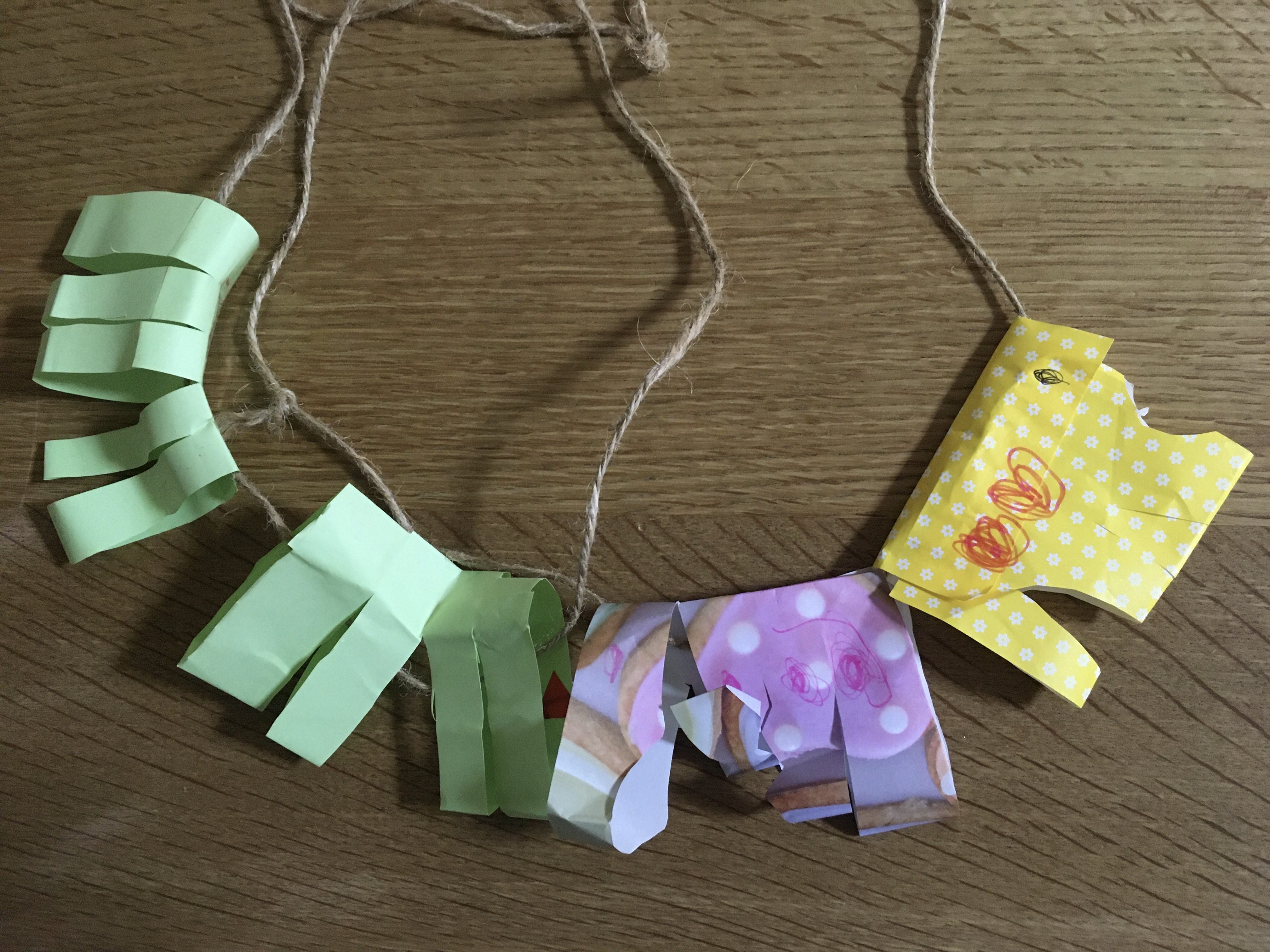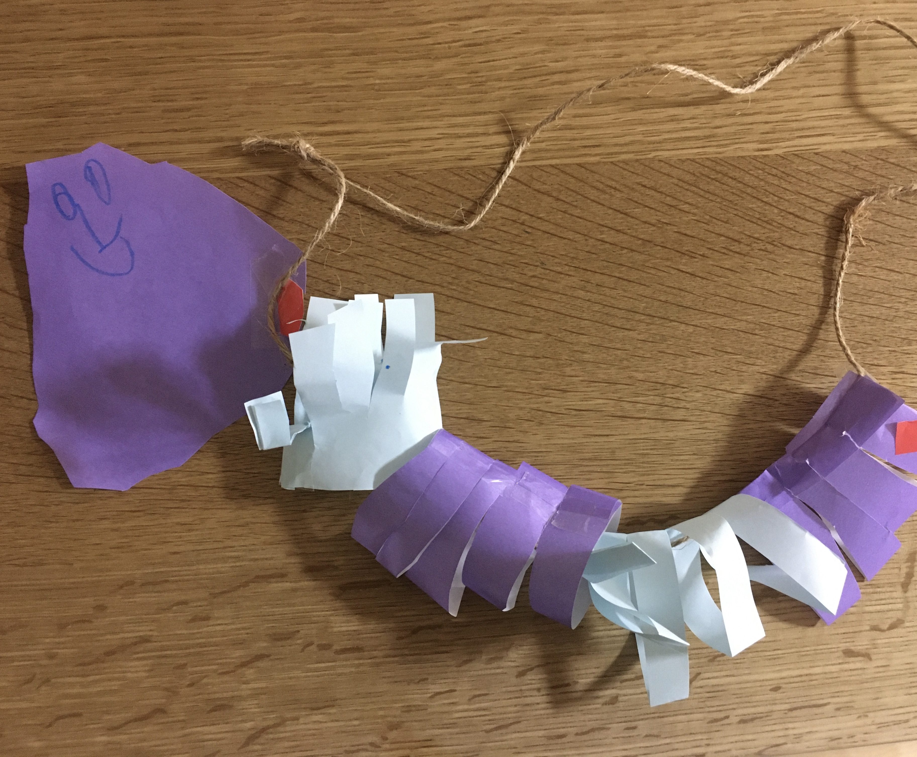 弟君のネックレスは紫と、白の折り紙で、なんだかとっても強そうですね。
