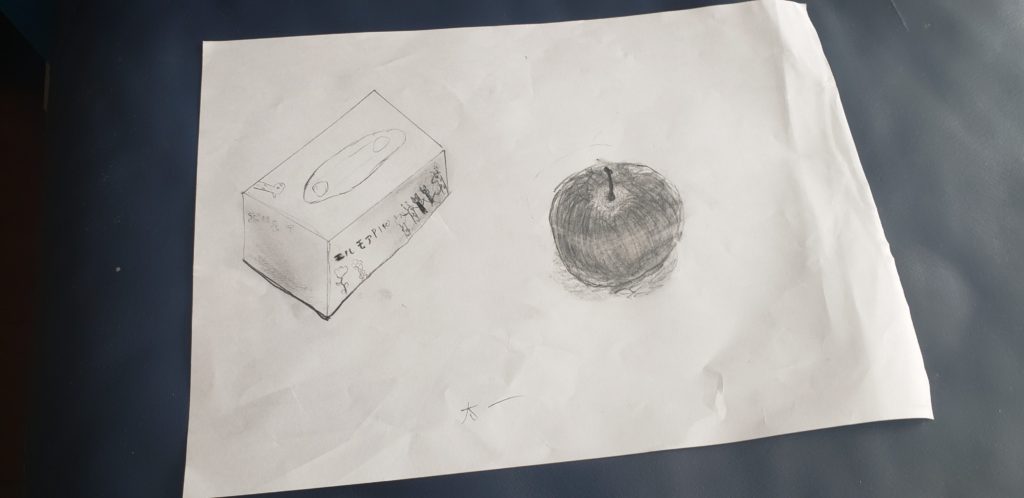 つねお先生 先生2020年5月9日 4:38 PM 太一くん今日もアトリエジャムのご参加ありがとう! 一枚め、難しい角度でチャレンジしてますね、正面からの2Dでの立体って難しい角度でも光を意識して、陰影を表現しきってますね〜 ティッシュの白さ、柔らかさ、軽さなどもよく見て意識して描いています! 二枚めは二つを組み合わせてデッサンに取り組んでくれていますね。 りんごゴリゴリ塗っていますね!こういう風に鉛筆を使ってくれて素晴らしいです!りんごの丸み、重さ、色味を意識して塗っている証拠です。 ティッシュ箱の3Dも立体感が出ていますよ〜 ログインして返信する ↓