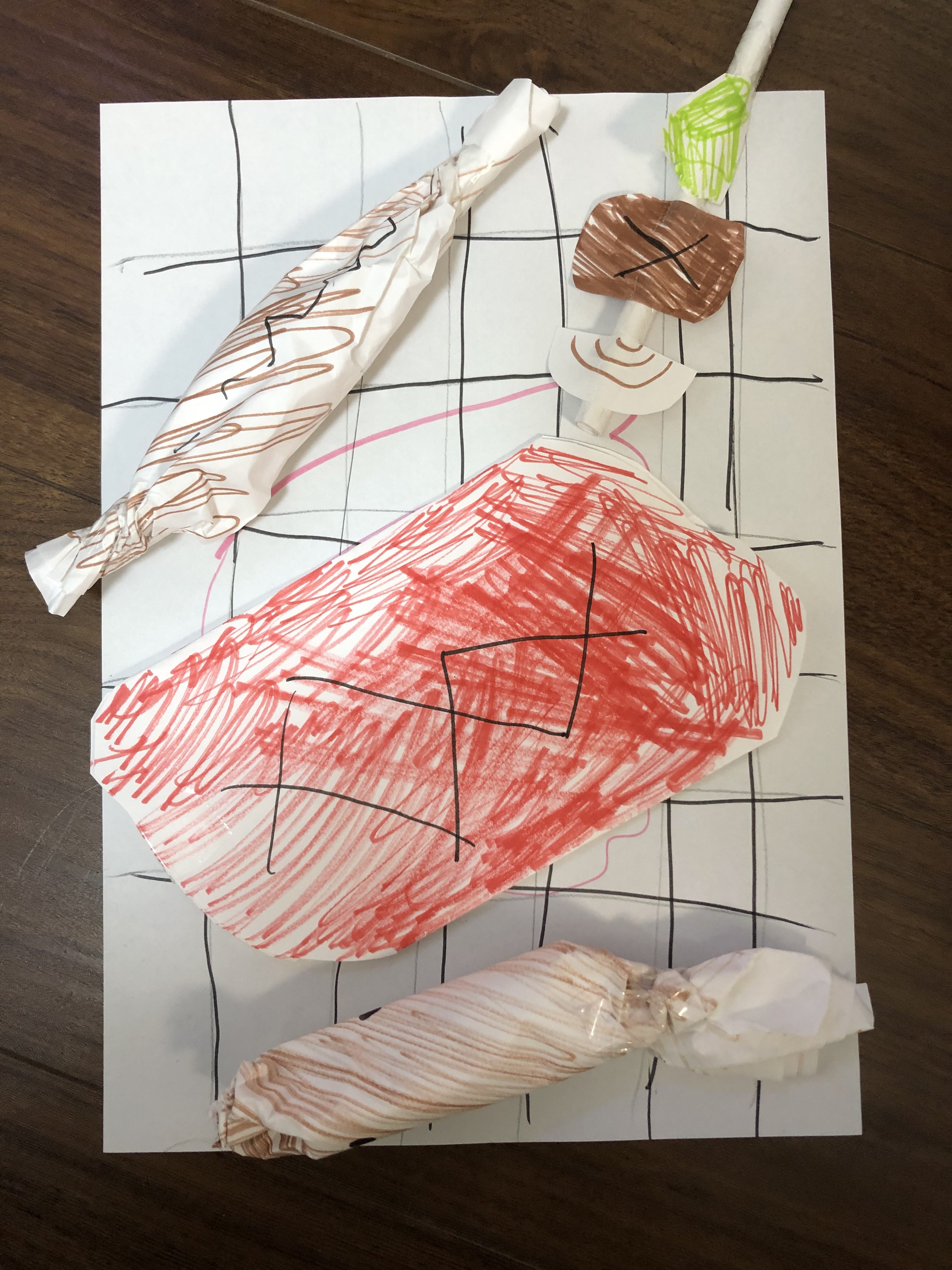 焼いた肉の網目がリアル!!!ウィンナー、お魚、お肉、どれも食べたいな〜〜〜!