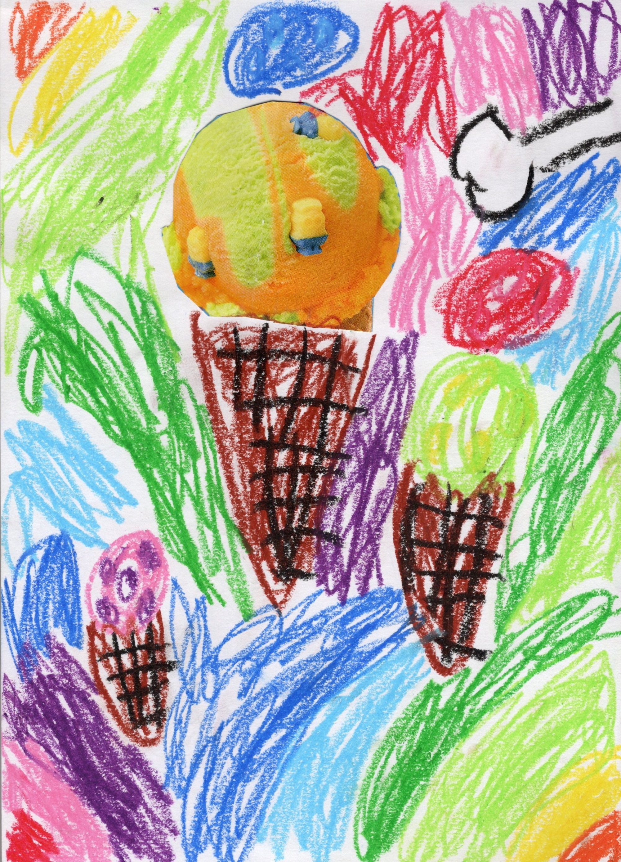 アイスのおいしそうな色に負けないくらい、クレヨンのおいしそうな色が沢山あるね!