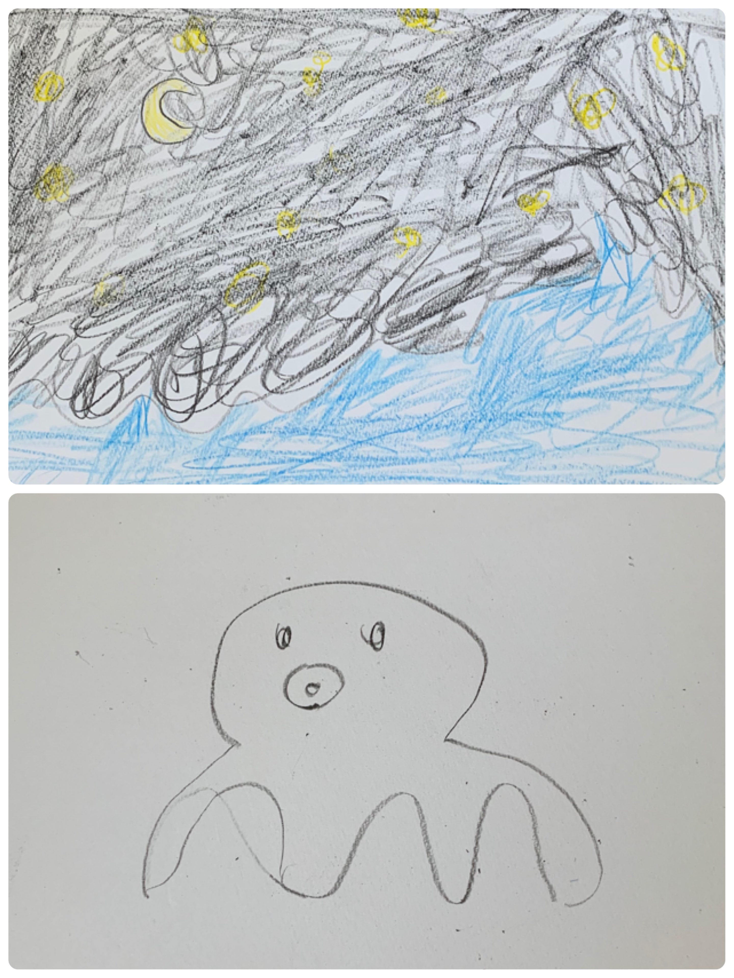 つぶつぶ先生と海の絵が一緒で嬉しかった♪