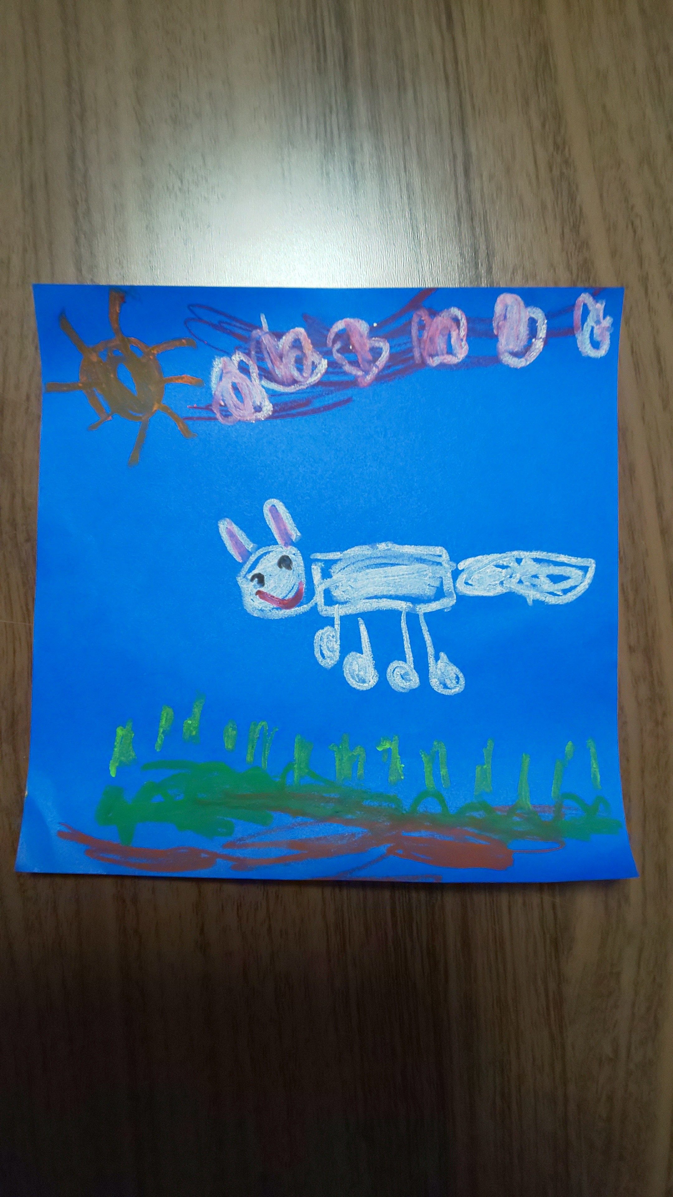 青い色のうえに、白いクレヨンでかいているのが、白が際立って見えて、とてもきれいです✨