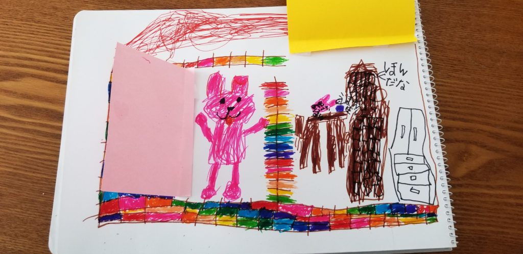 ますみ チャイルドアートサポーター2020年5月18日 12:39 PM カラフルな壁がすごい!!はみ出さずに塗るのってすごくギジュツがいるんですよ〜 時間をかけてがんばれるのは、きっと好きがつまったお絵かきなんですね。 ハリネズミさんがかくれてるハートと、うさちゃんのいるトビラのドアノブのハートがあわせてあってかわいいです〜(^-^) ログインして返信する ↓