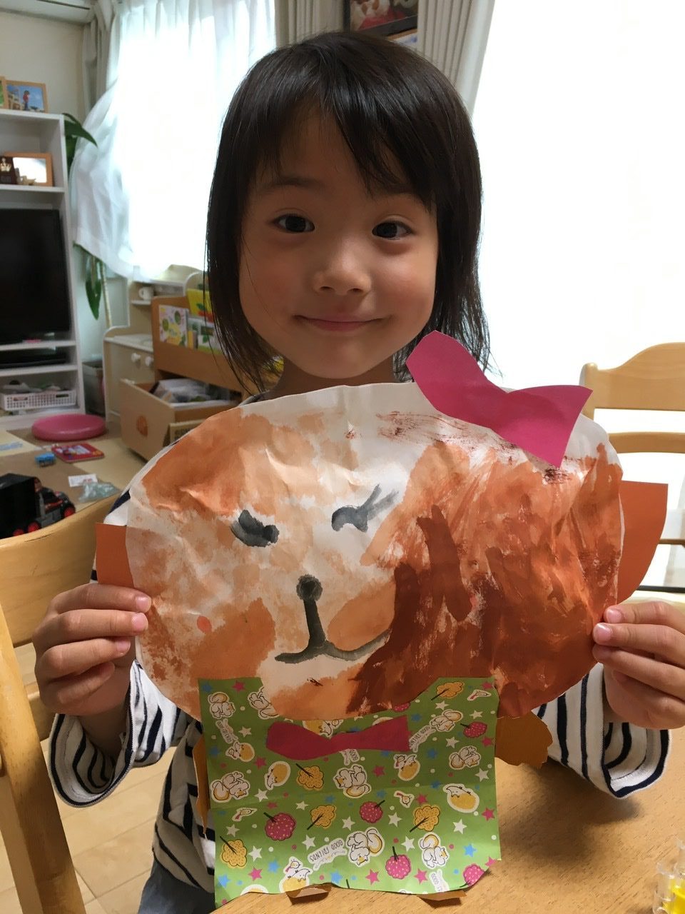 みゆちゃん、がんばってわんたんのお顔全部ぬってくれたね、わんたんも嬉しいと思うなあ。