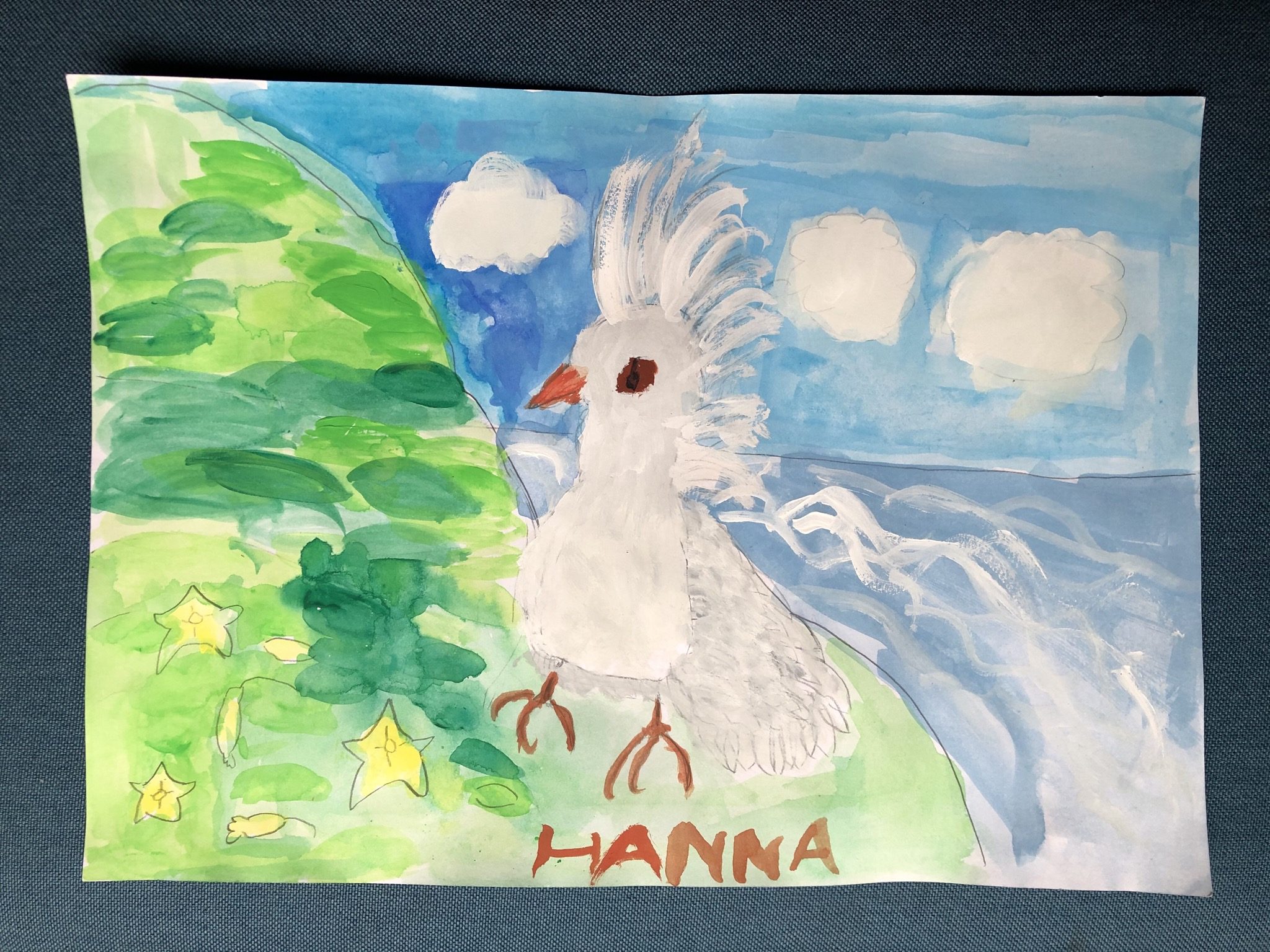 きょうこ チャイルドアートサポーター職業・専門:テンペラ画2020年5月17日 5:56 PM hannaちゃん、zoomの時にも見せてくれてありがとう! ニューカレドニアのカグ―、とってもすてき! 頭のところにふさっふさっと毛がはえてて、とってもかっこいい。 筆の勢いがとってもいいです。 羽のところのふわふわ感もすごくでてるね。 これも筆のタッチで表現して、描き分けてくれてるね! くちばしや足の形、目もよく見て描いてくれてる! 海の波もいいなあ。 波音がきこえてきそうです。 お山の方の色合いもすごくきれい。 緑・黄緑を水の量でこいところうすいところを作ってくれて、色の幅がとても広いです! ログインして返信する ↓