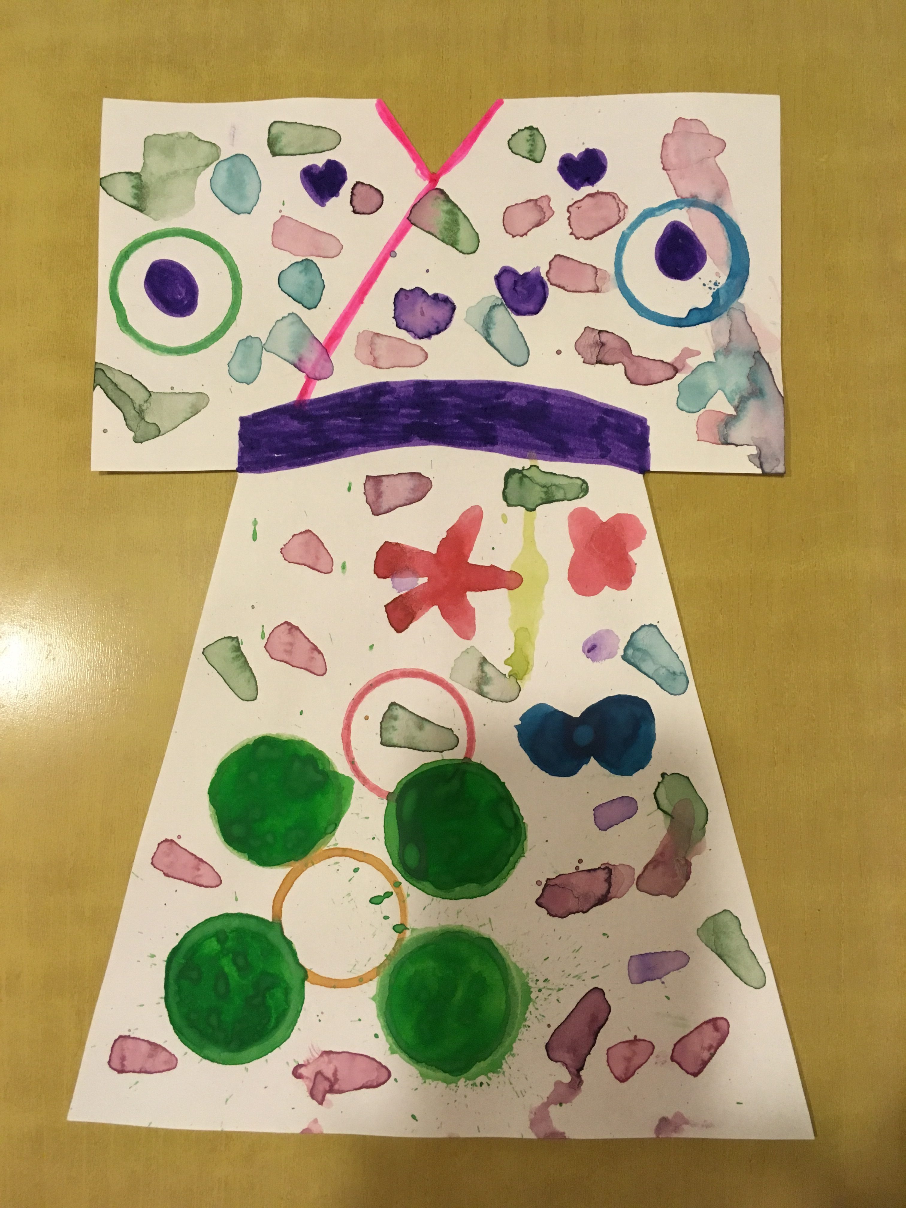 すごい!えのぐ のスタンプで デザインしたの! とてもすてきな もように おどろきました~
