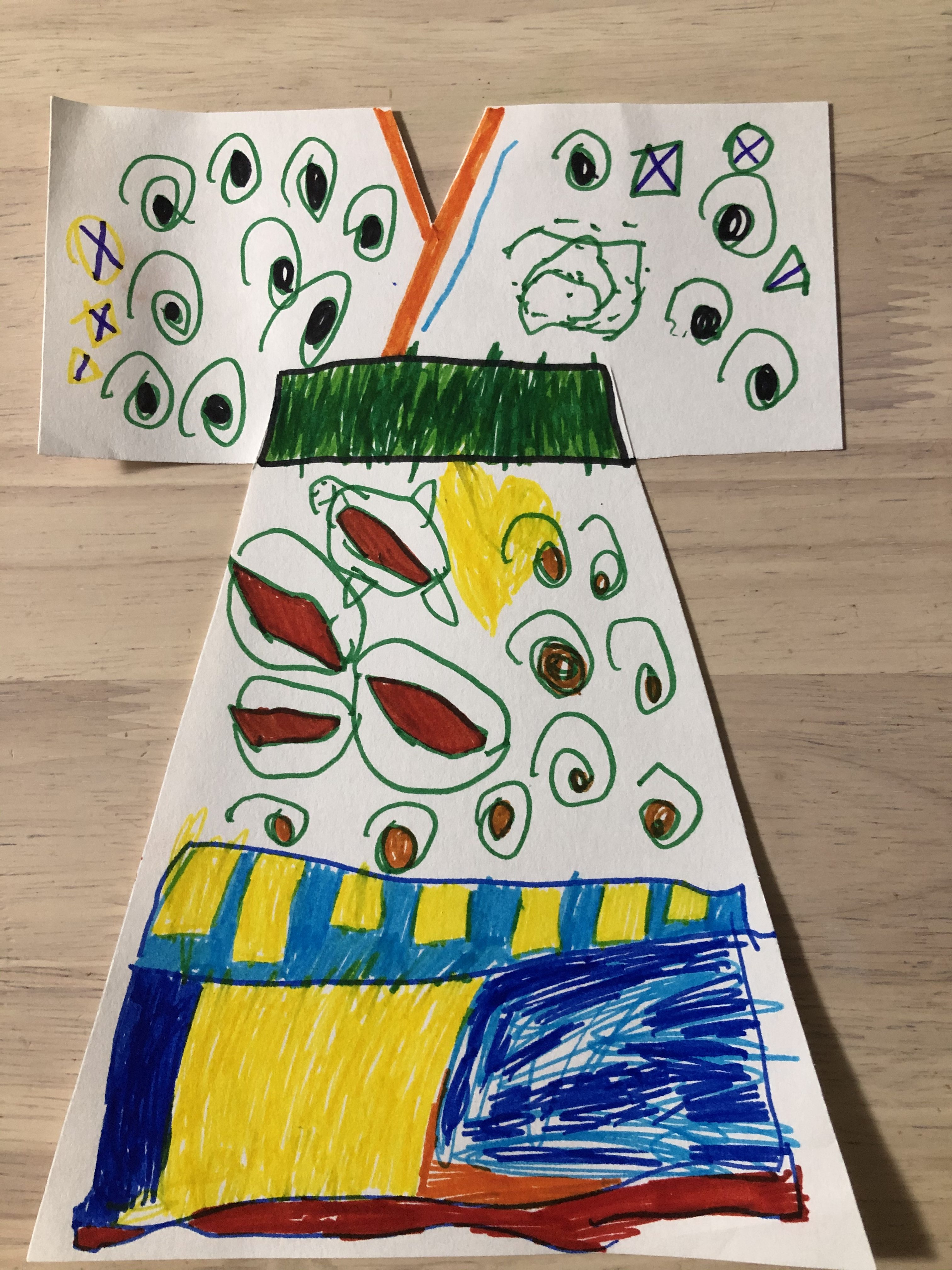 いろいろ考えたデザインを描いてるね。色を塗るところ、余白をうまく使ってるね。毎週参加嬉しいです。今週もよろしくね。