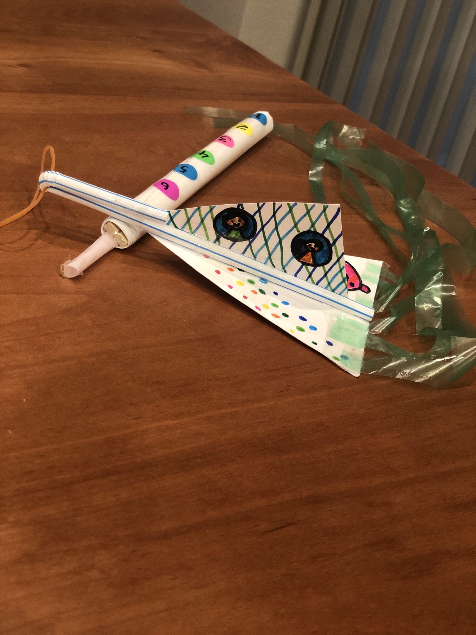 発射台は、何かの紙で丸めて作ってくれたんだね〜!立派になったね!カウントダウンしている!