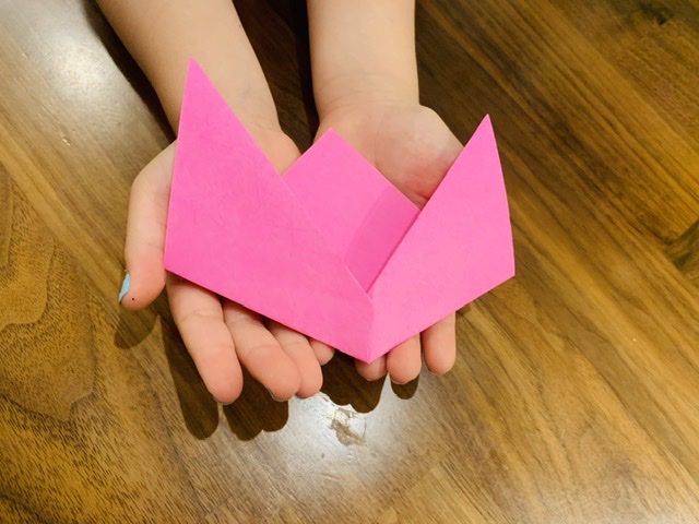 おりがみチューリップのステキなおくりものだね!!たいせつにたいせつに、両手でプレゼントしたんだね!!