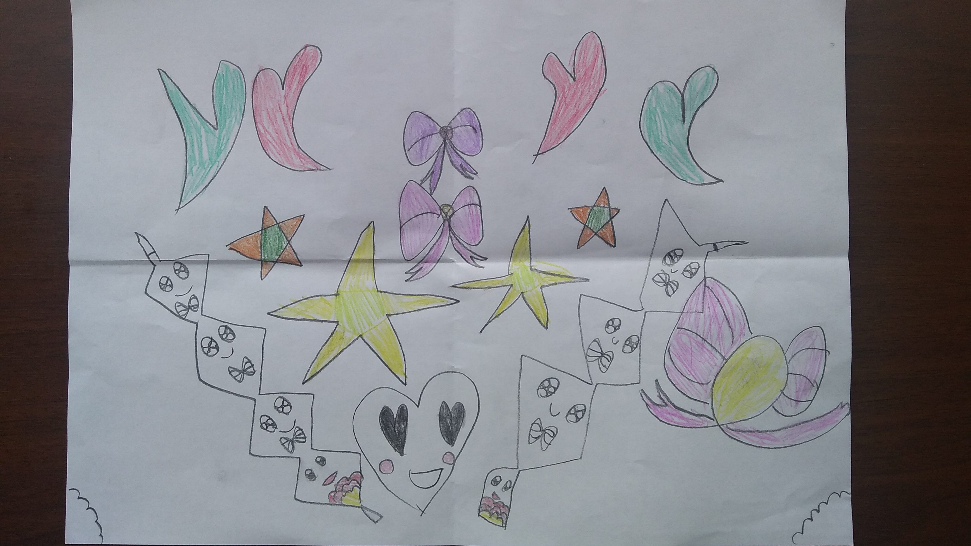 四角のホウセキちゃんがしているリボンは、クリームでできています。 真ん中にいるハートちゃんの目もハートの形です。