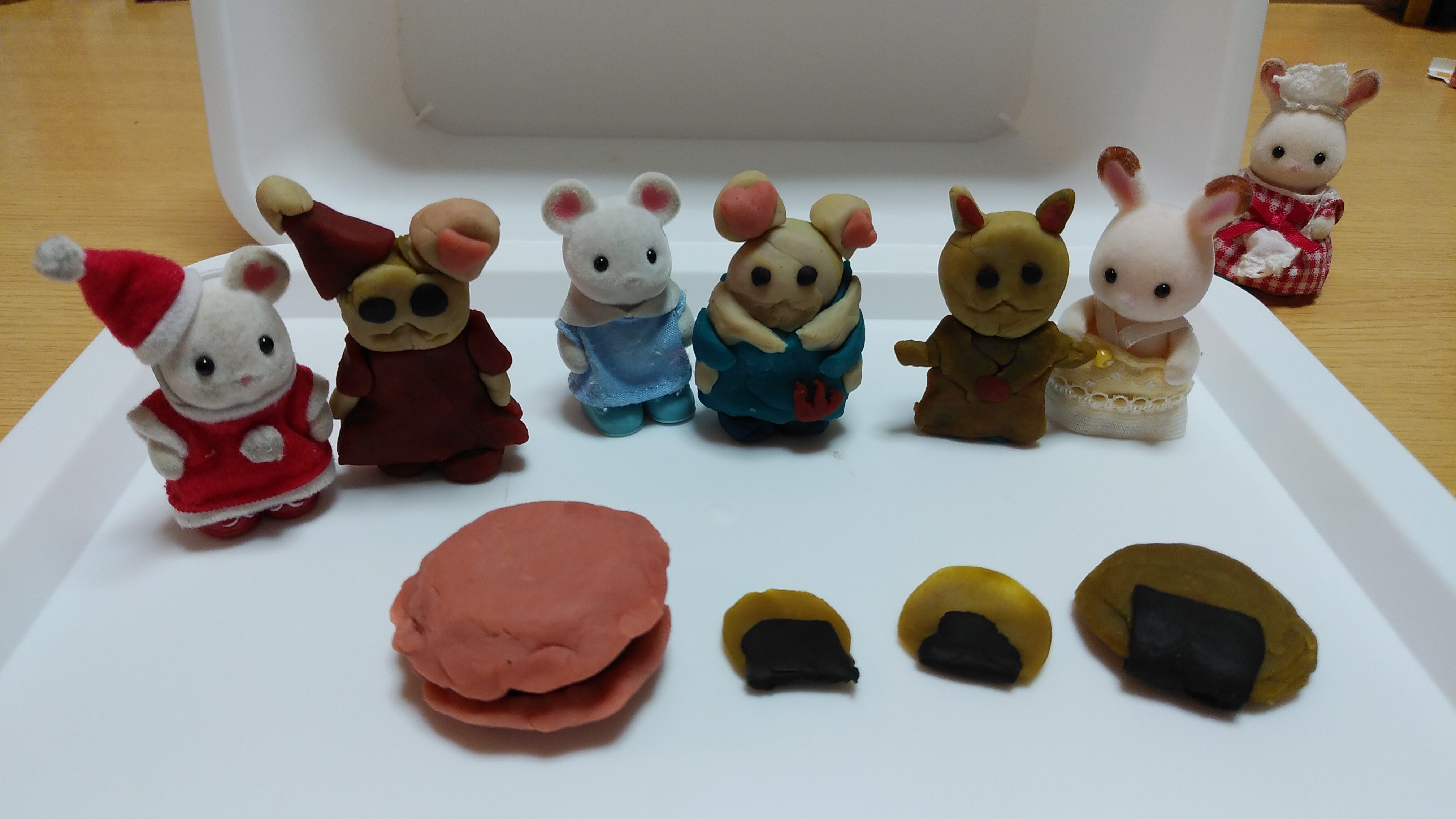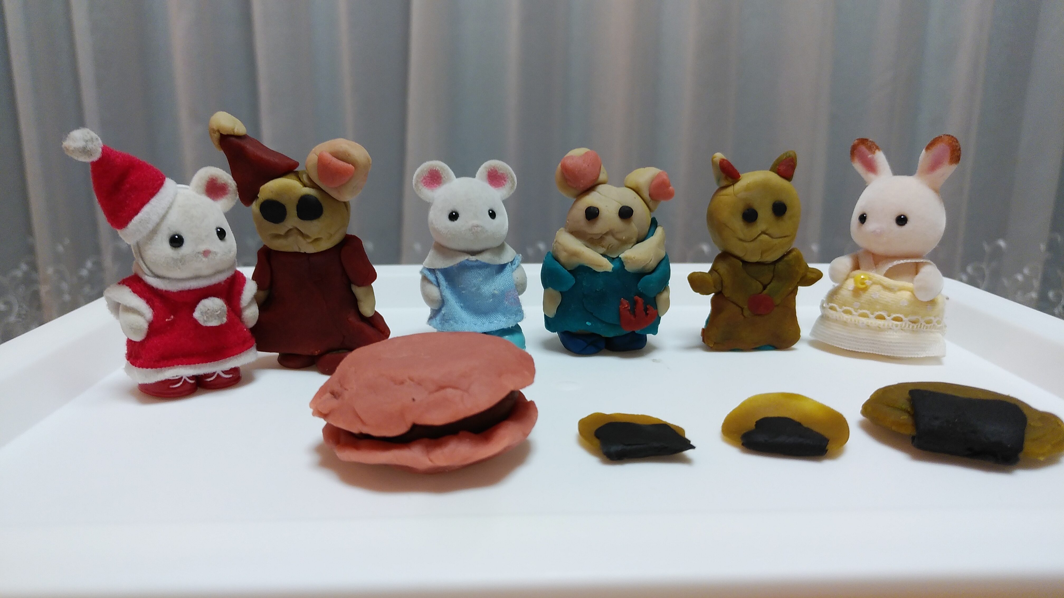 トレーのうえにちょこんちょこんとたっている、シルバニアのおともだちさん!