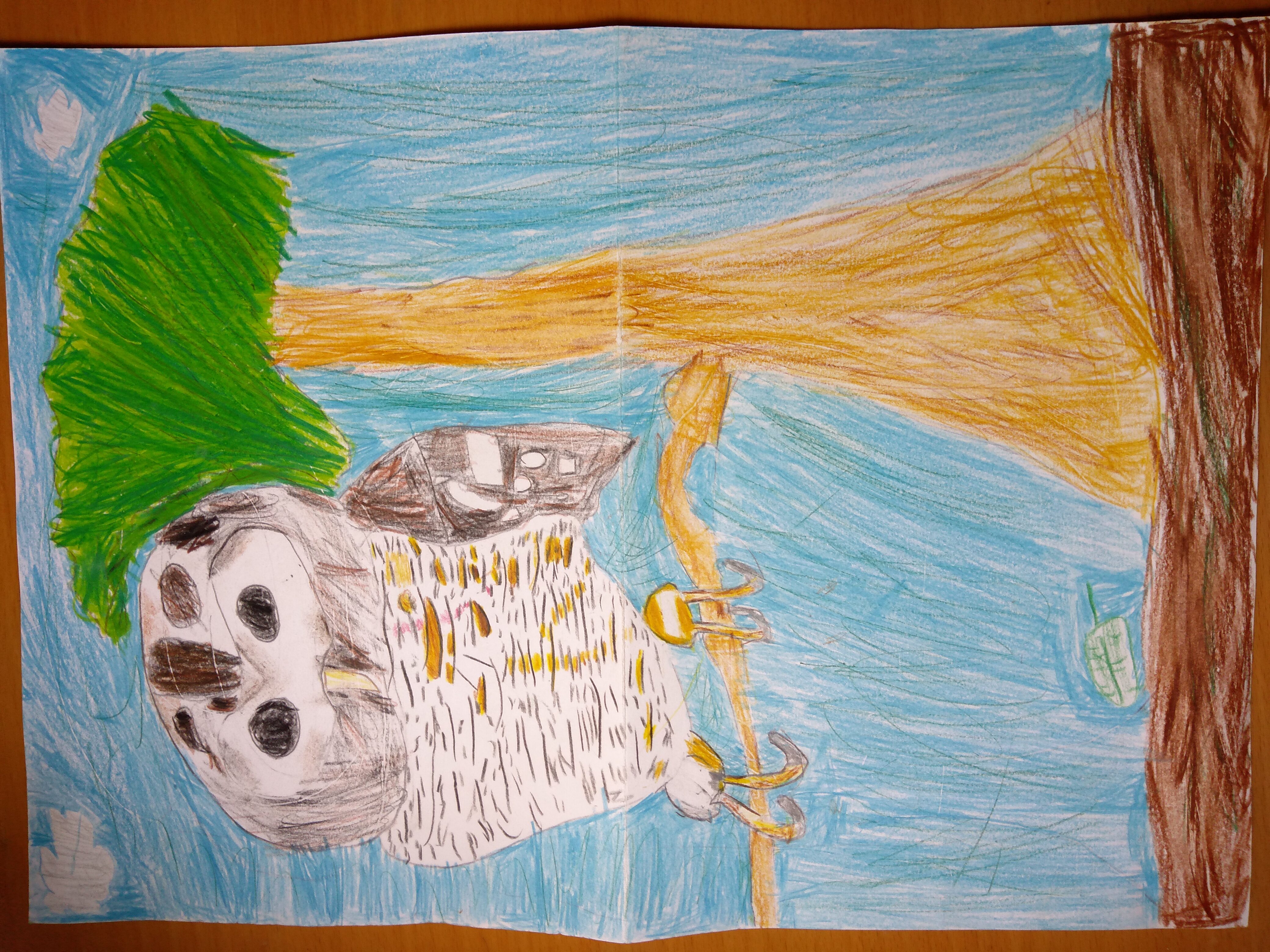 フクロウの羽の模様とか、木を掴んでる足指とか、よく見て描いたね!!