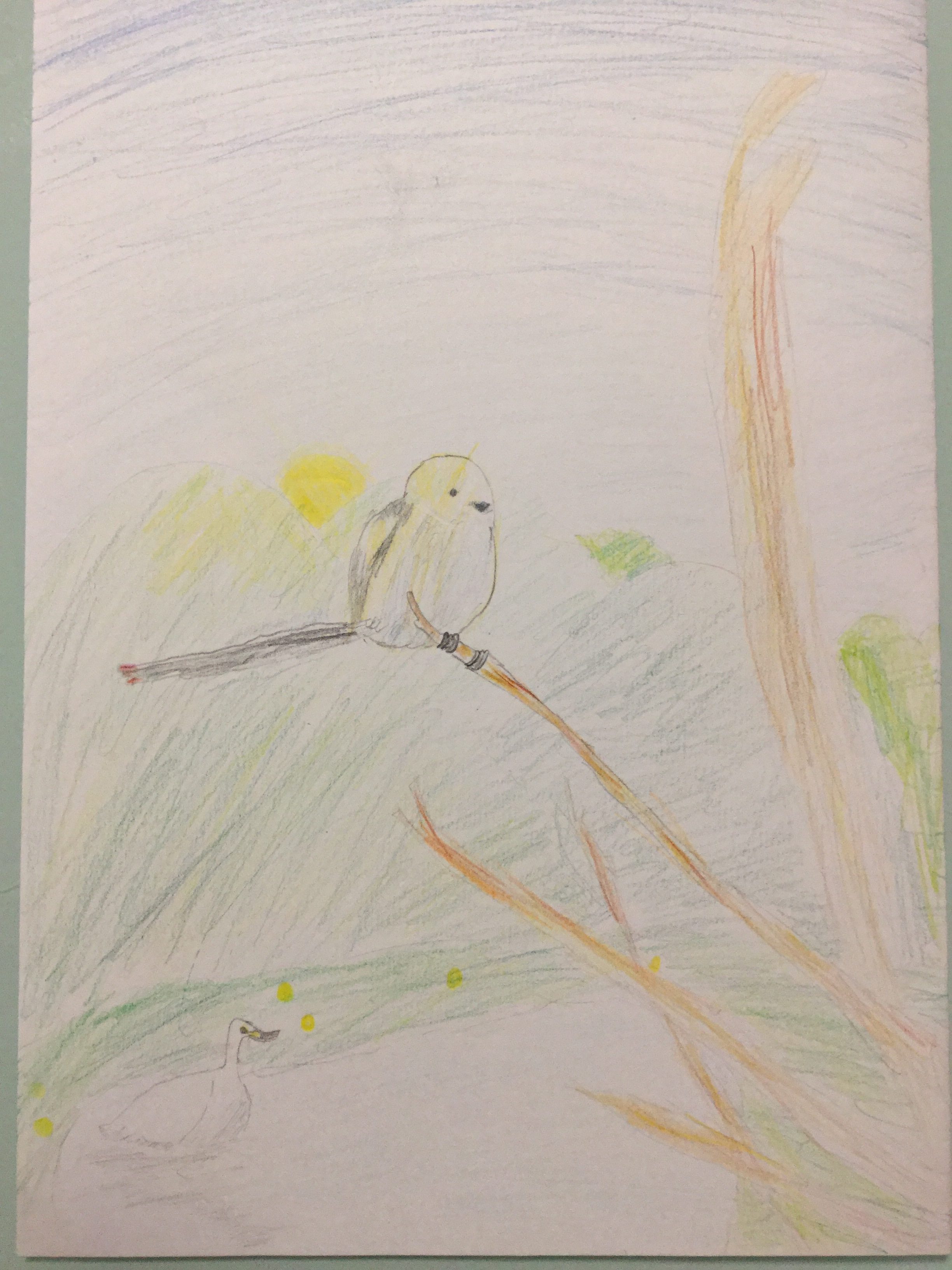 鳥さんを観察して描くだけでなく、朝日を背にする構図にするとは、ナイス演出です!