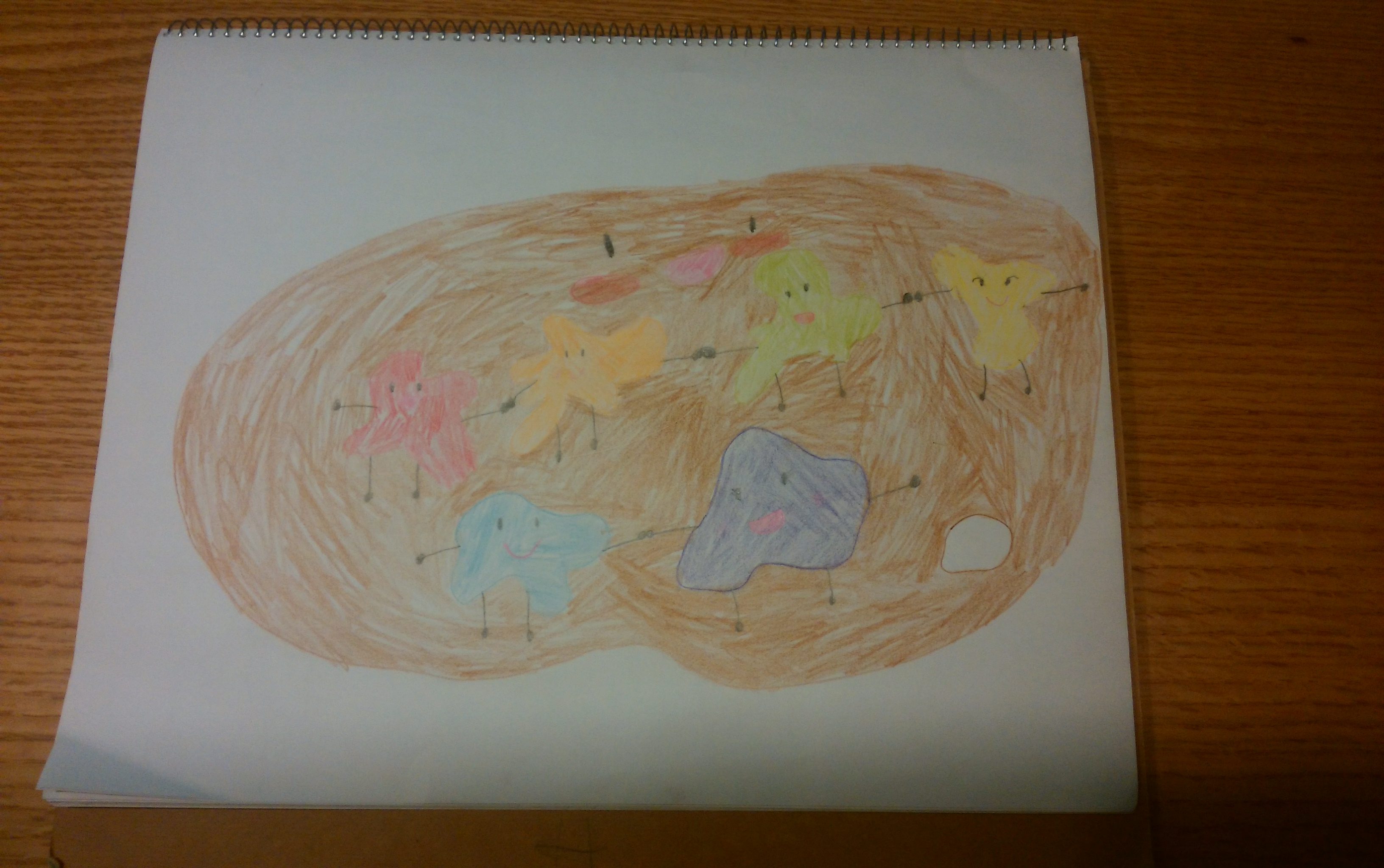 てをつないでいるえのぐたちがちからをあわせてがんばっている、っていうかんじがしていいね!
