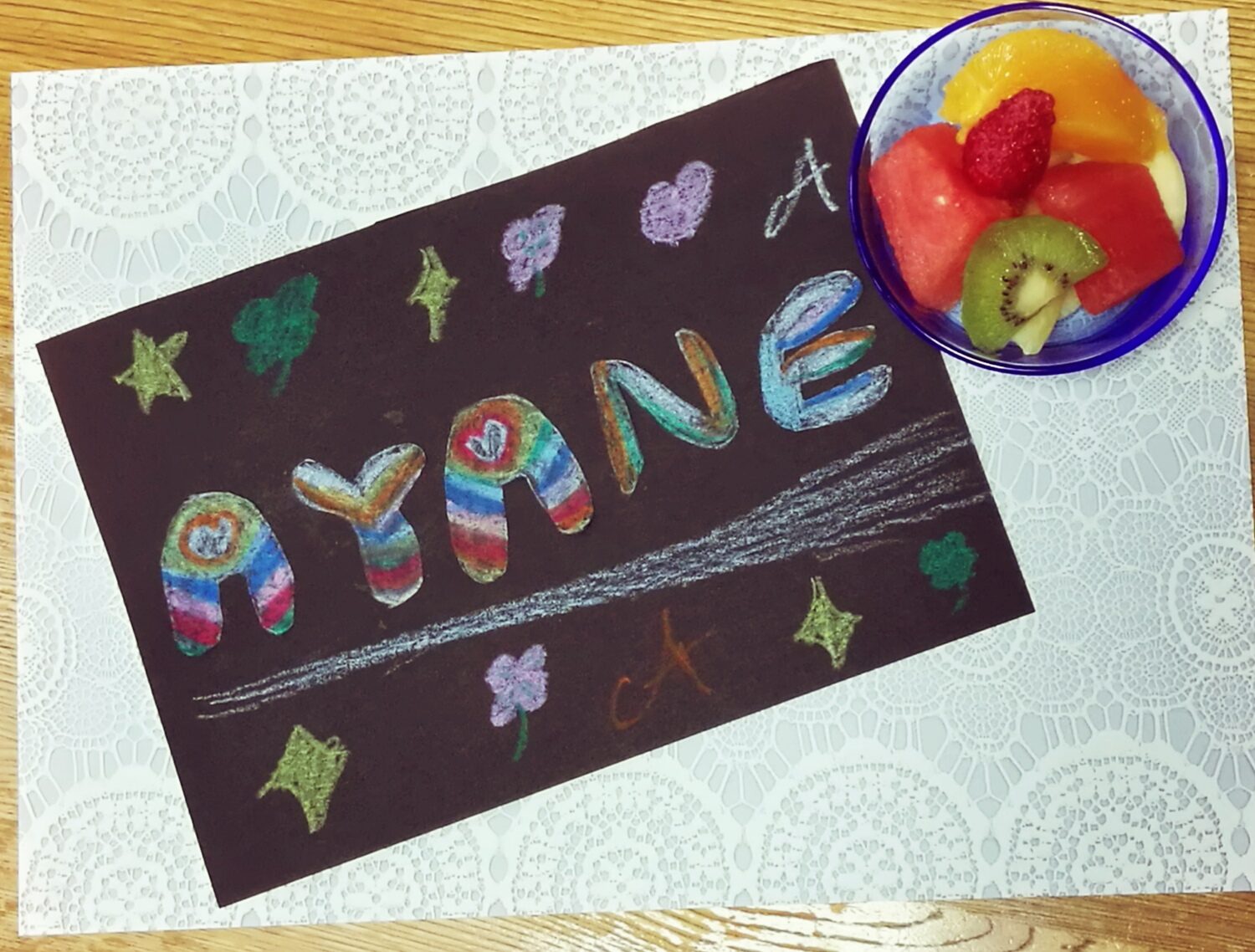 しゃしんも、すっごくくふうされていますね!レースに、くだものをそえて✨ワクワクしますね!