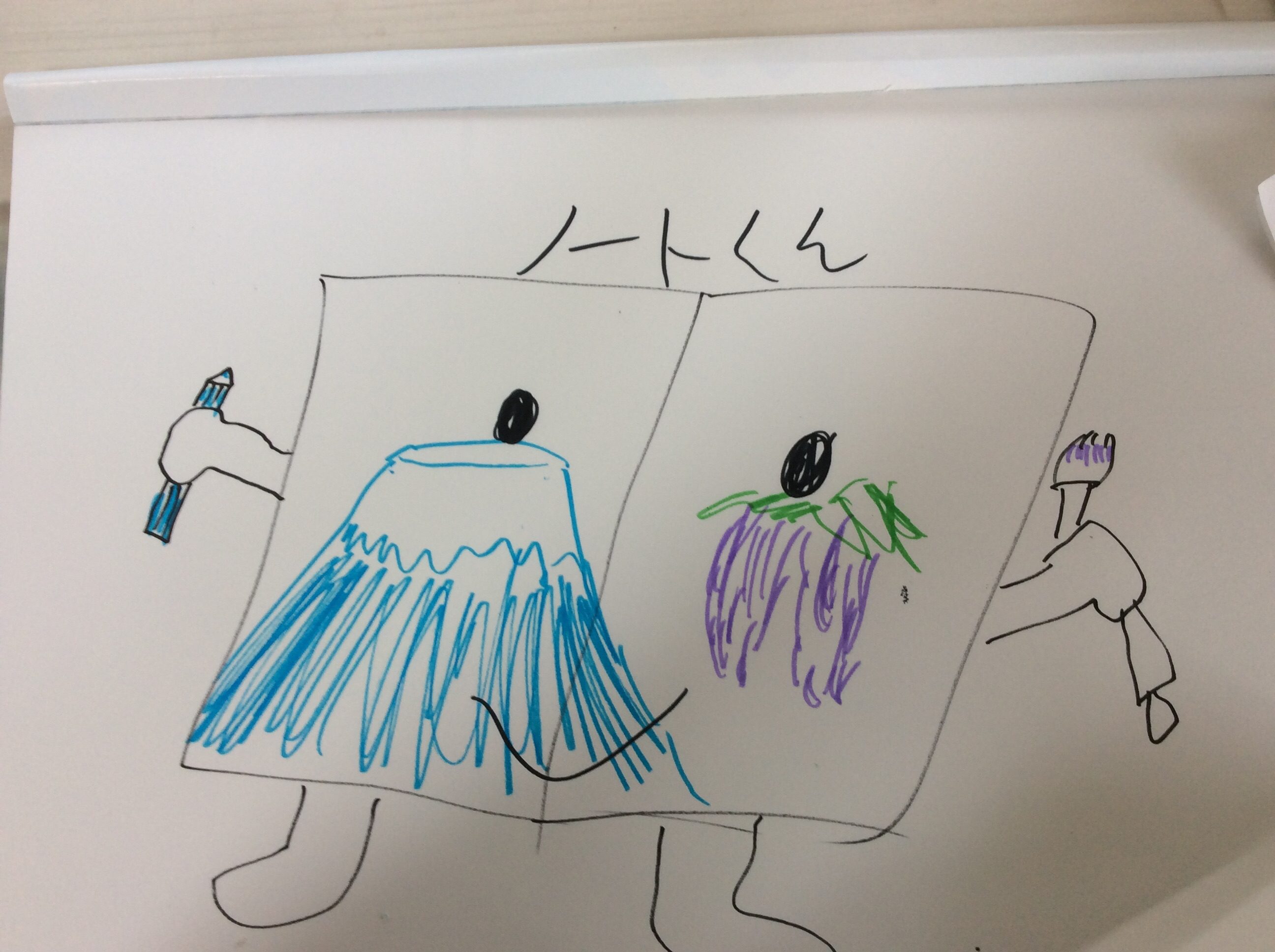 うまいことかんがえてるね! ノートのキャラなんだね! じぶんでカラーぺンやふででかいちゃうのもおもしろい!