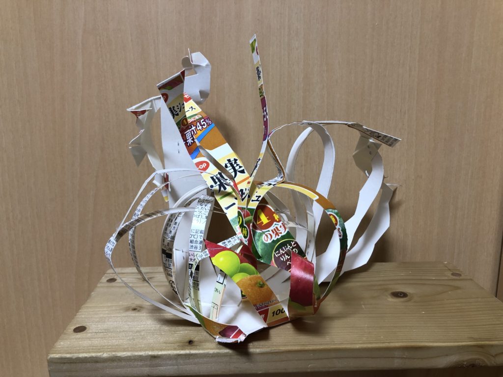 牛乳パックをいろいろな切り方で切ってみました。何も考えずにやりました。そしたら蜘蛛の巣みたいになったので、タイトルを蜘蛛の巣にしました。