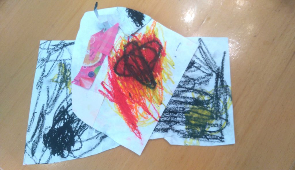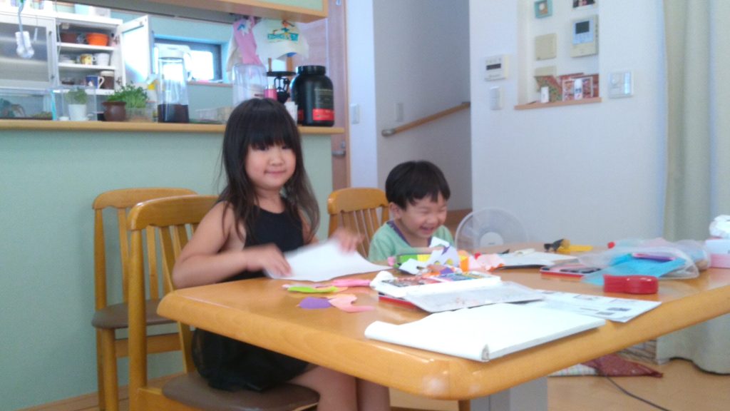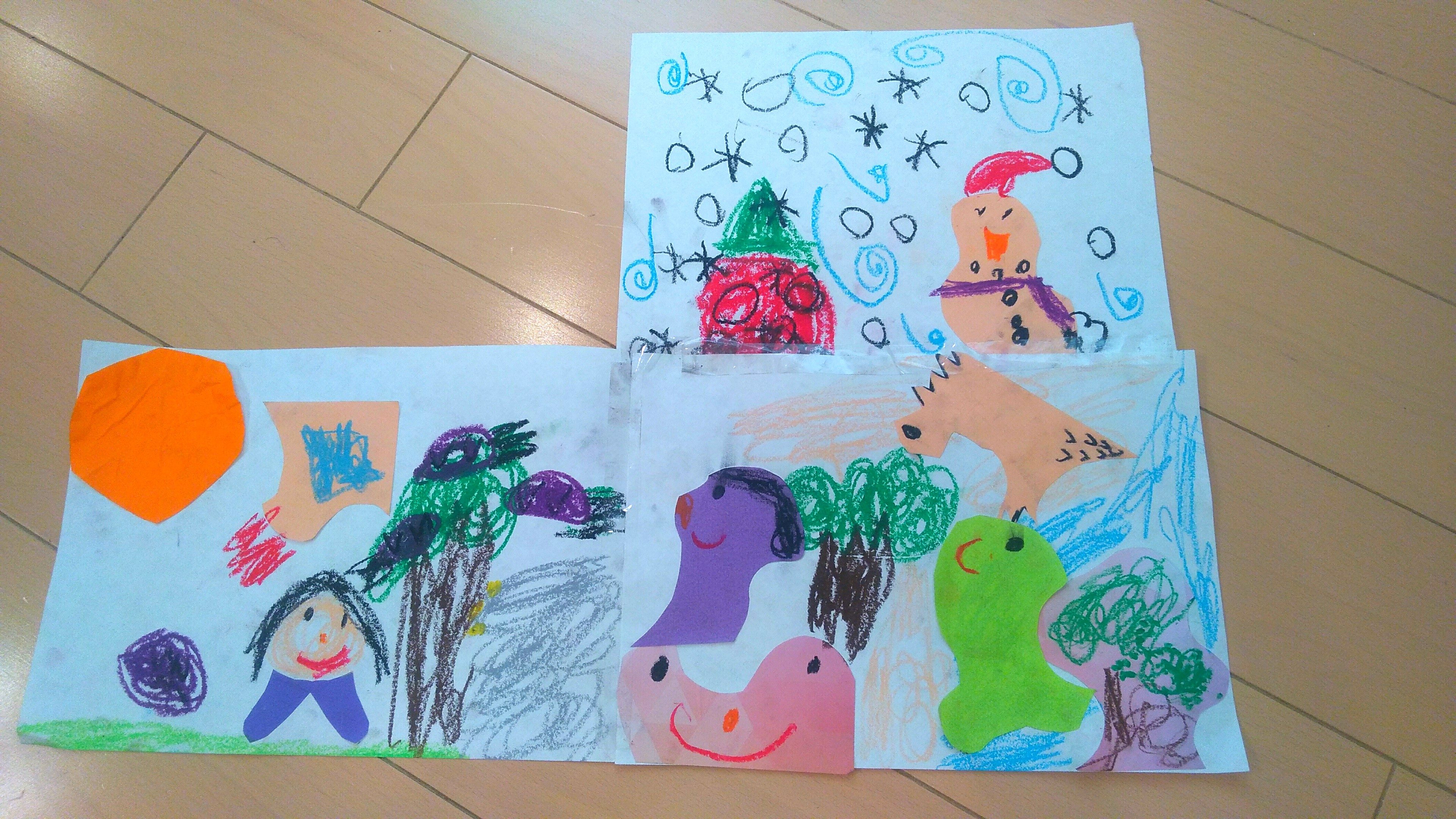 折り紙を切って貼ってみたのかな?(^◇^)もしかして画用紙も自分で切ったのかしら!