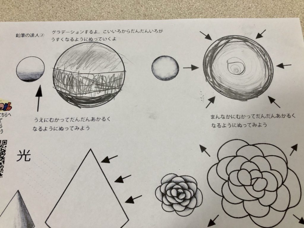 2枚目もグラデーションを出そうとしているのが、すごく伝わってきます!明日、続きを一緒にやろうね!!