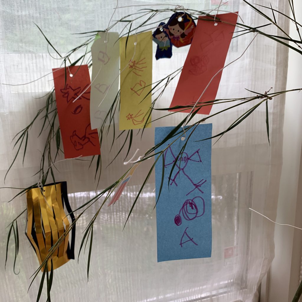 彦星様と織姫様のお話もしたら、「そうなんだぁ〜」と興味深そうに聞いて、近くにつけてあげていました☺️