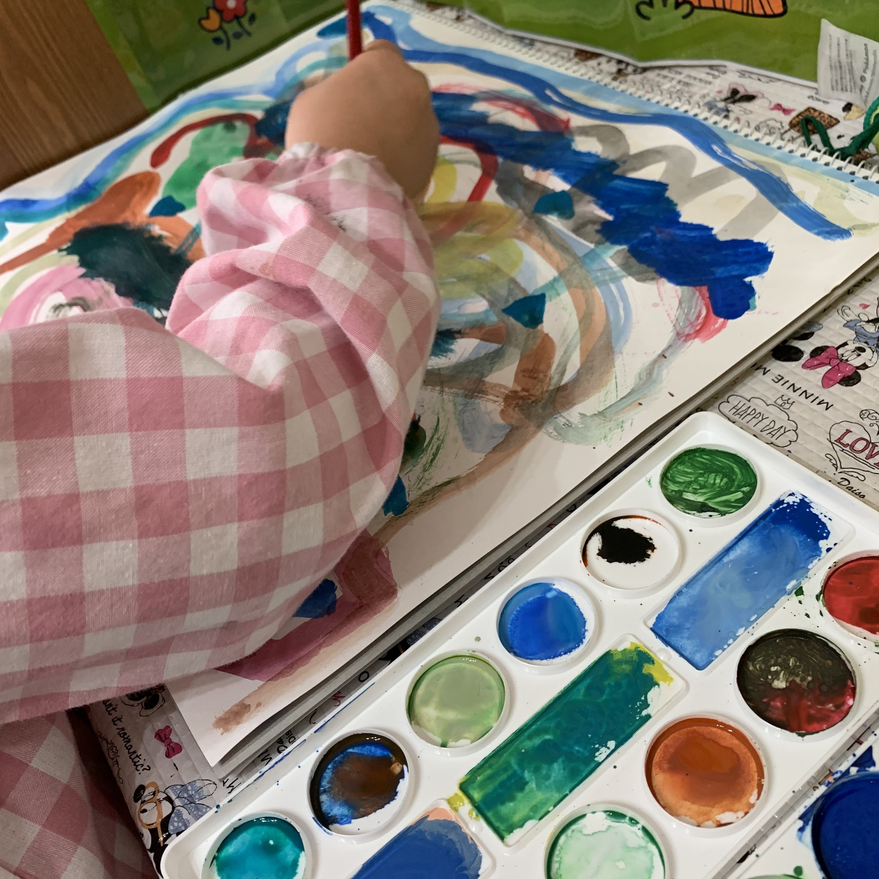 パレット、ここまでたくさんのお部屋を使ったのは初めてで、色混ぜを楽しむいいきっかけになったようでした😌紙の上は何度も重ねるので破れちゃわないか心配しましたが😅「黒の上でも色変わるよー」と実験しつつ楽しんでいるようでした 【 smile2 】