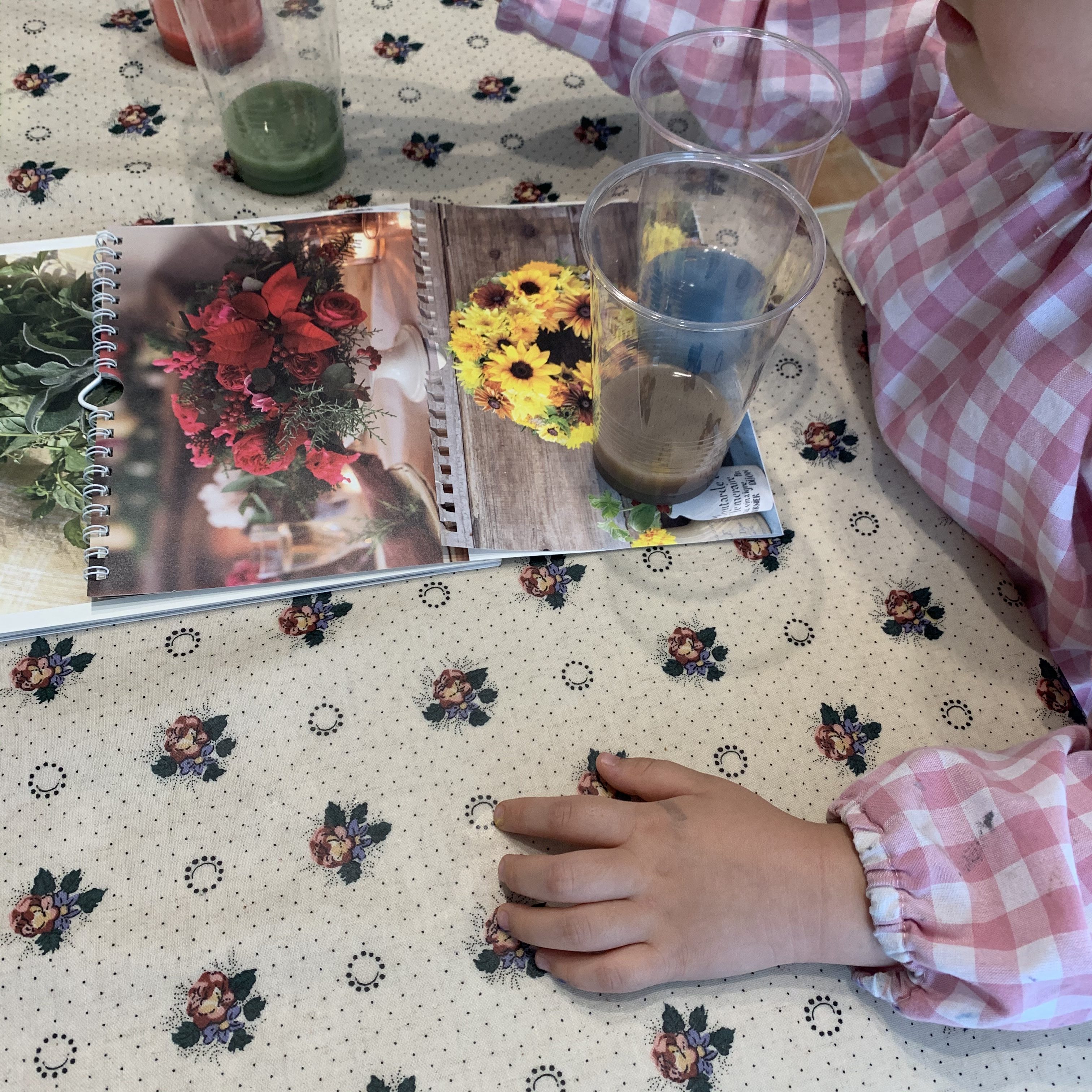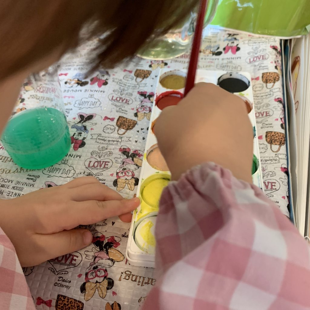 最後は「好きな色を作るー」といって、色々混ぜてみて(最終的にどれも渋い紫色みたいになっていましたが)実験を楽しんでいるようでした^ ^
