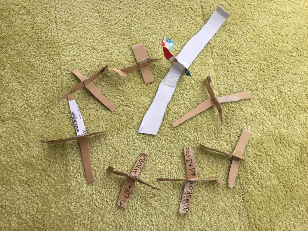 これが一つのダンボールからすずくんがみんな作ったひこうきで、輪っかになってとんでるのすてきだー!