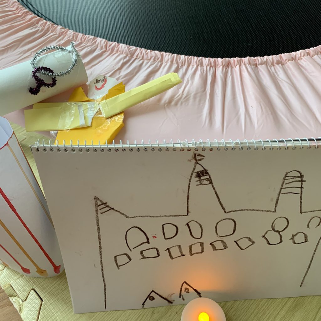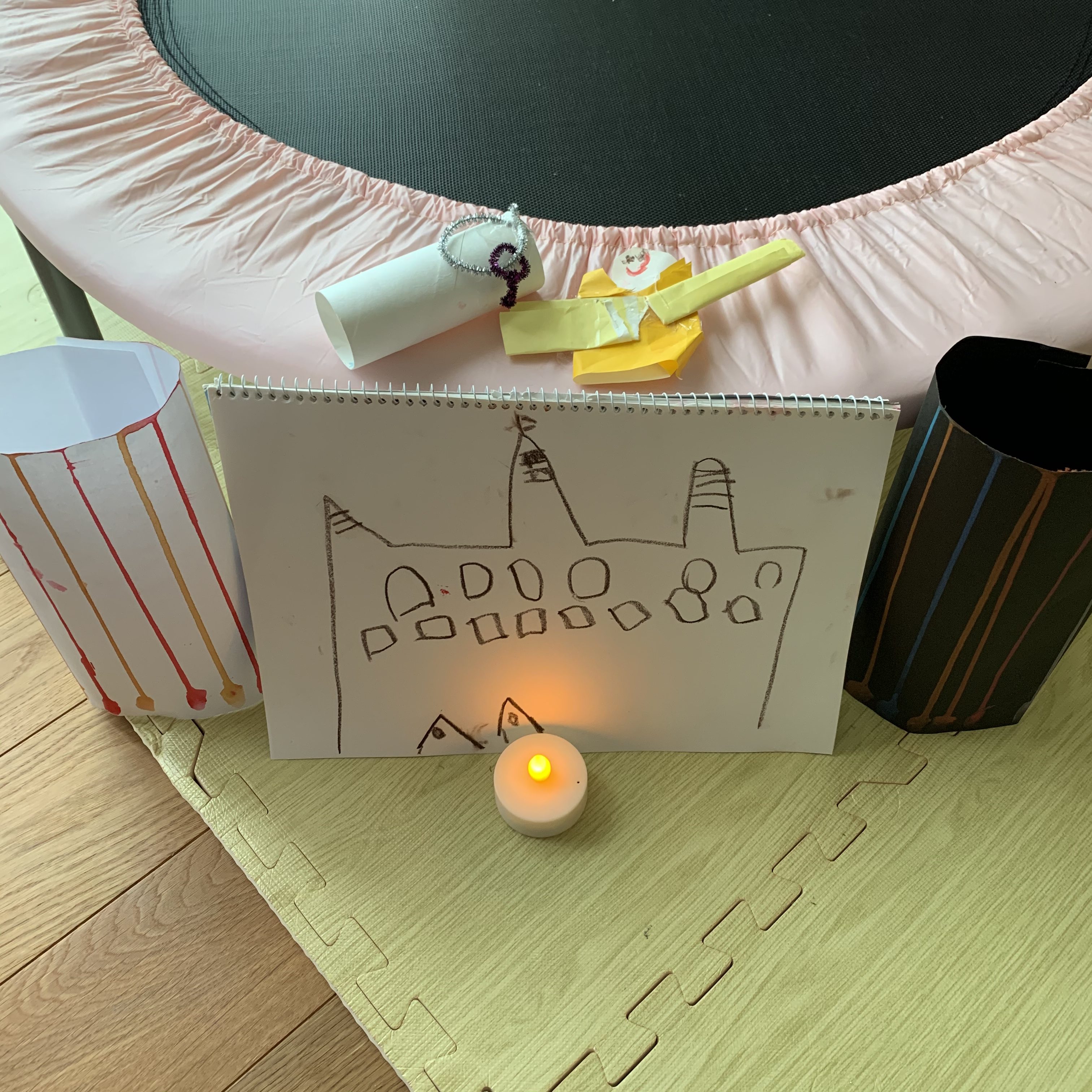 ”えのぐであそぼう”のりぃちゃんのお城とキャンドルをみて、「やりたーい」と真似っこして作った作品です^ ^