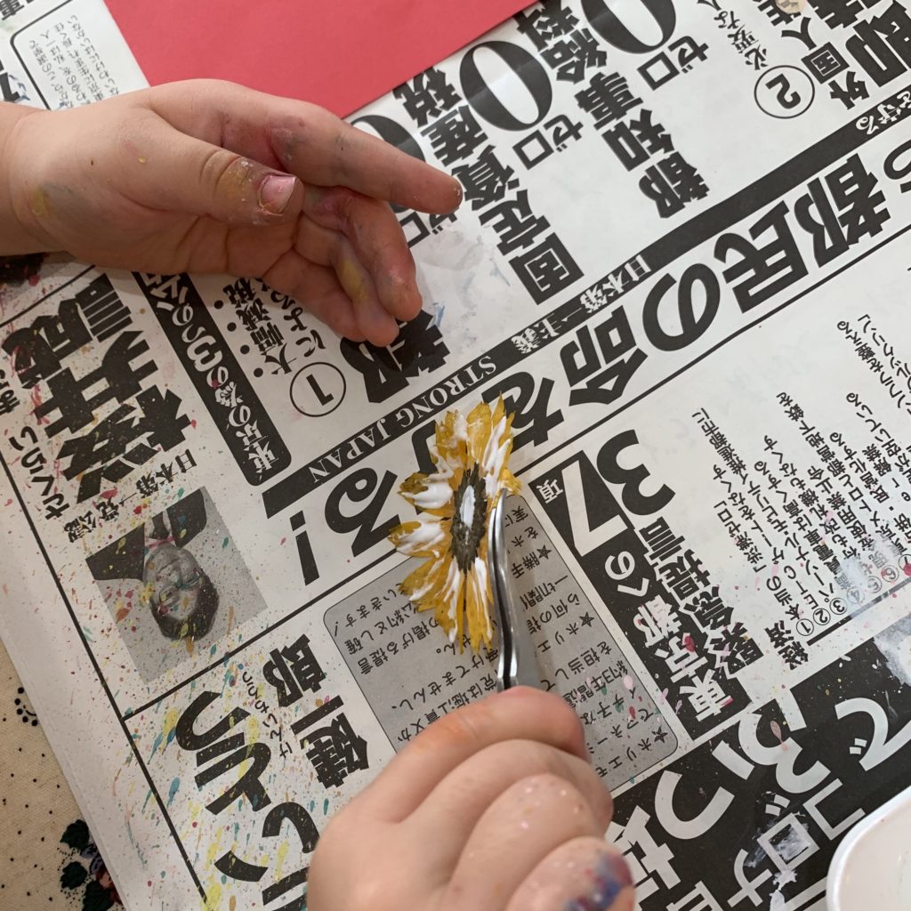 ひまわりを赤に貼って、「夏らしくて素敵だね〜」と言ったら、「そうでしょ!?」と自信溢れる笑顔でした